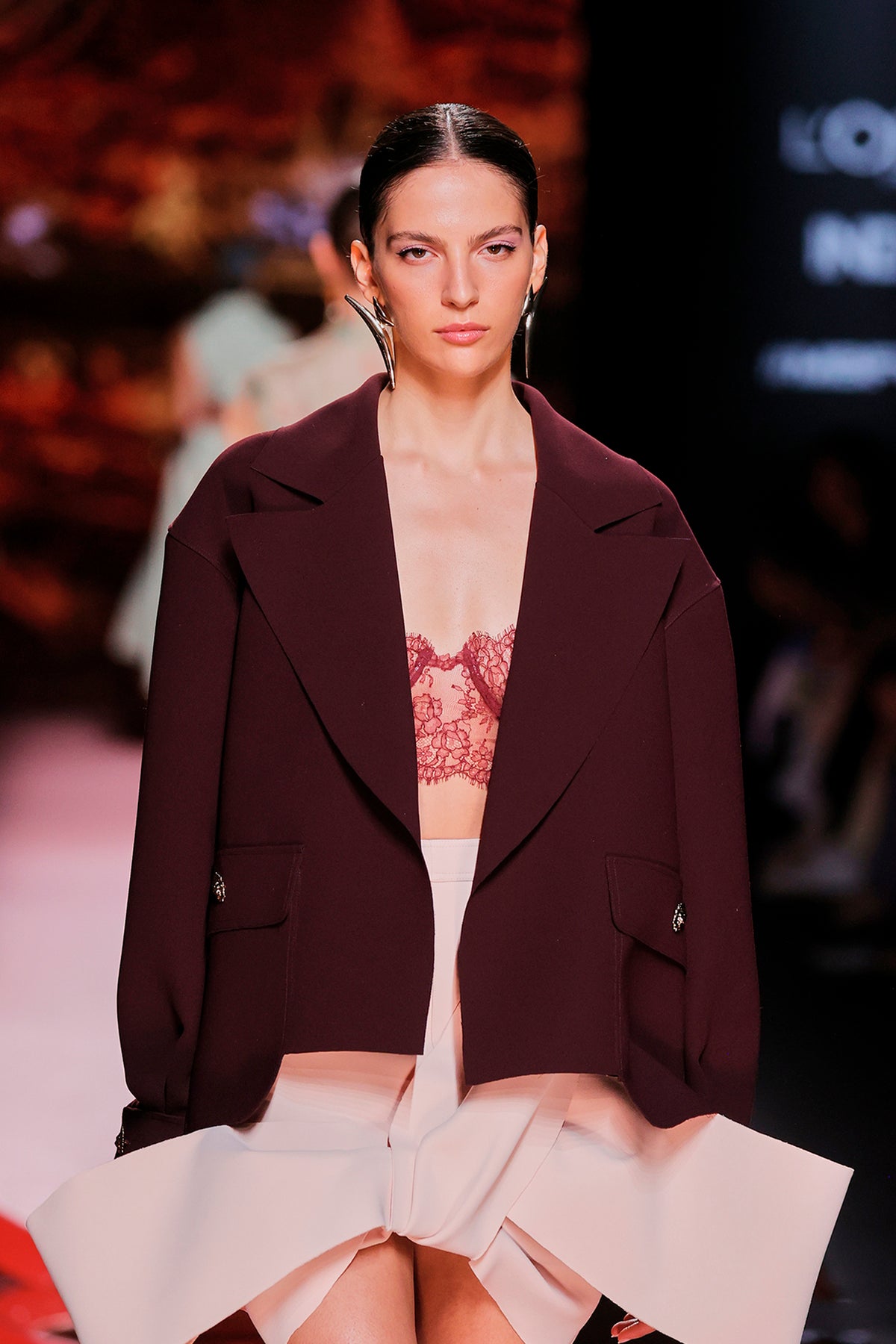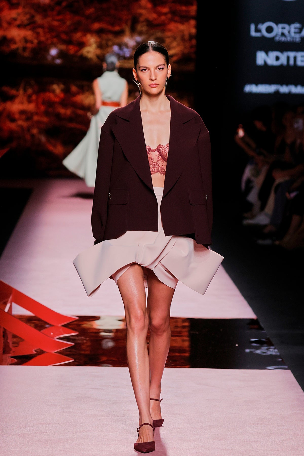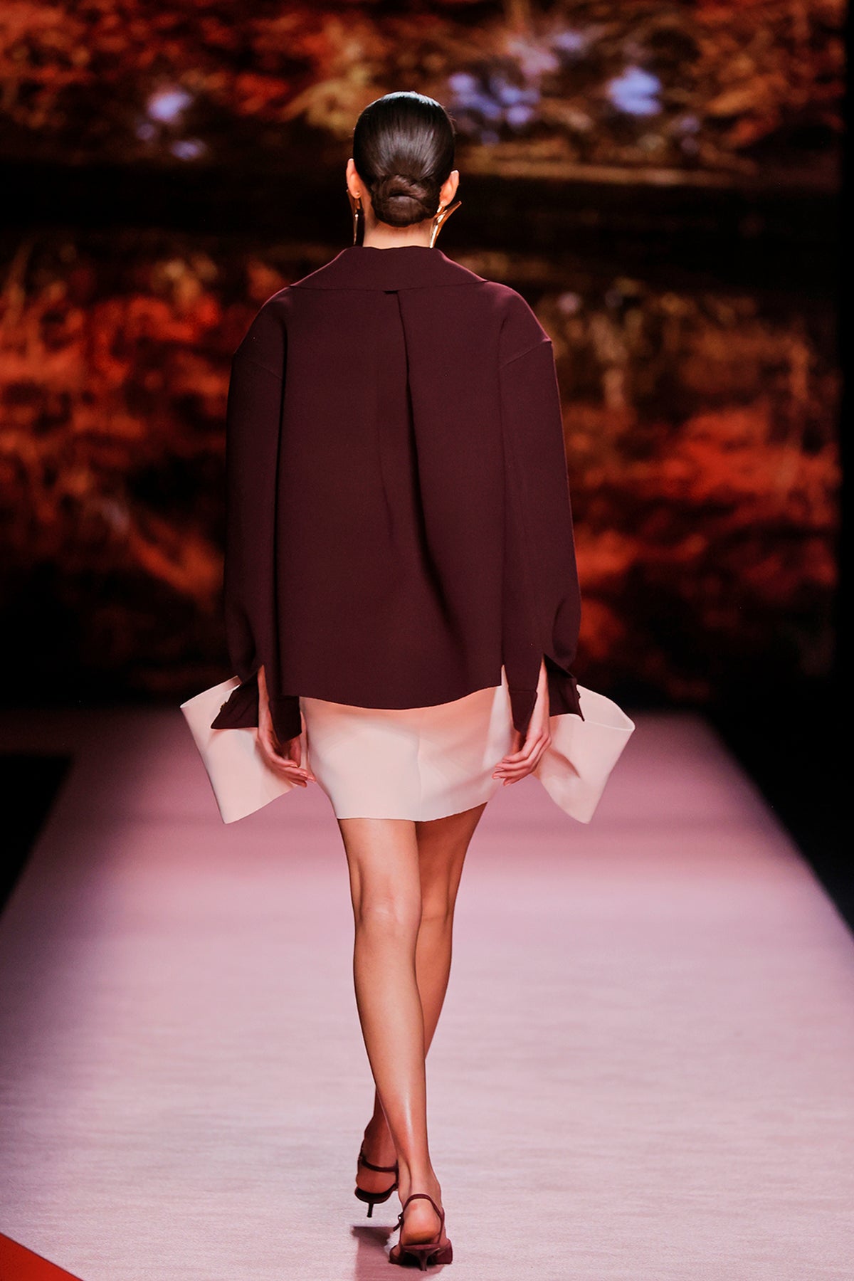 Multicolor crepe short dress. Featuring an ensemble with a V-neckline and loose long sleeves.