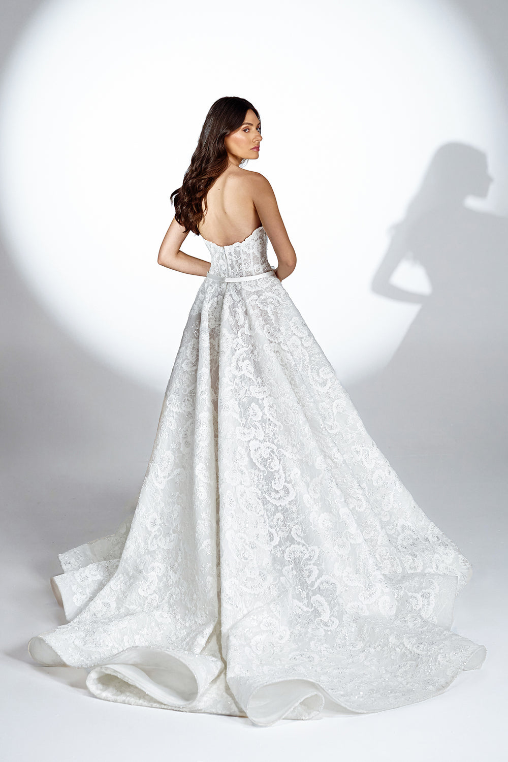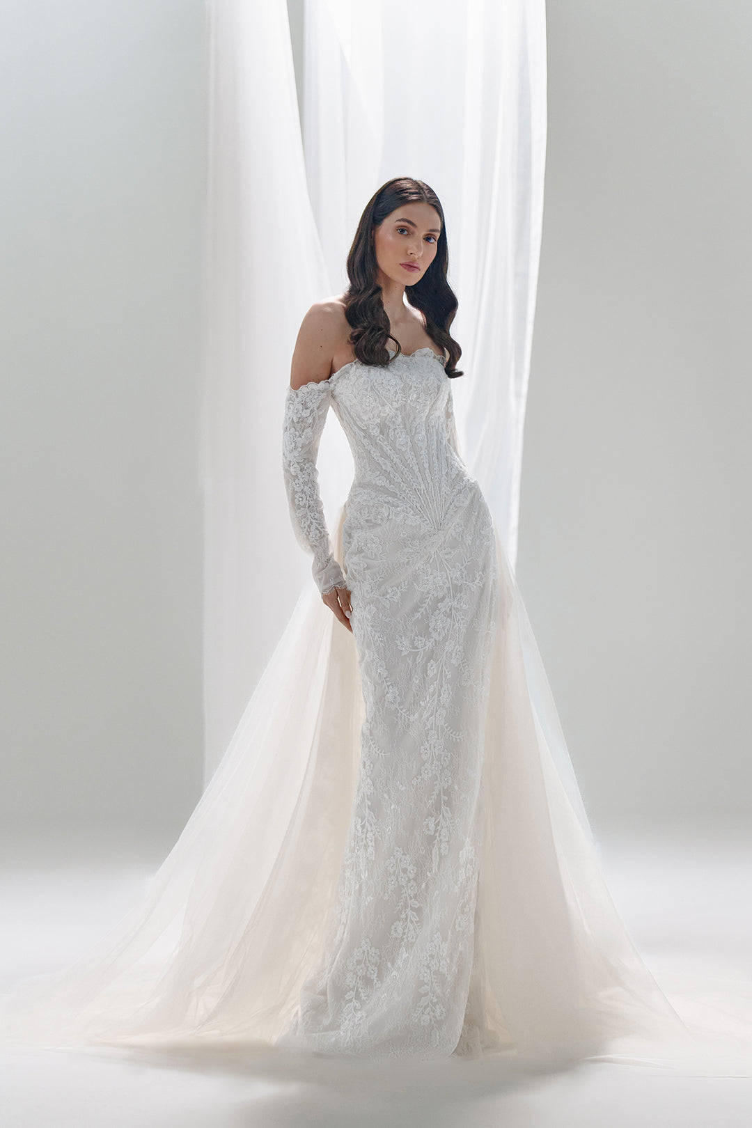 Strapless Bridal Gown with Detachable Sleeves and Train