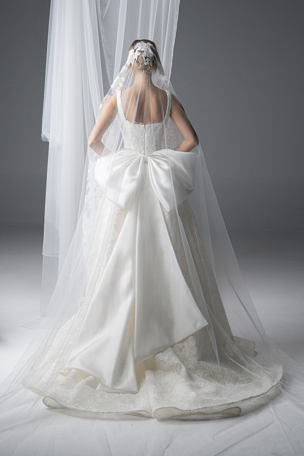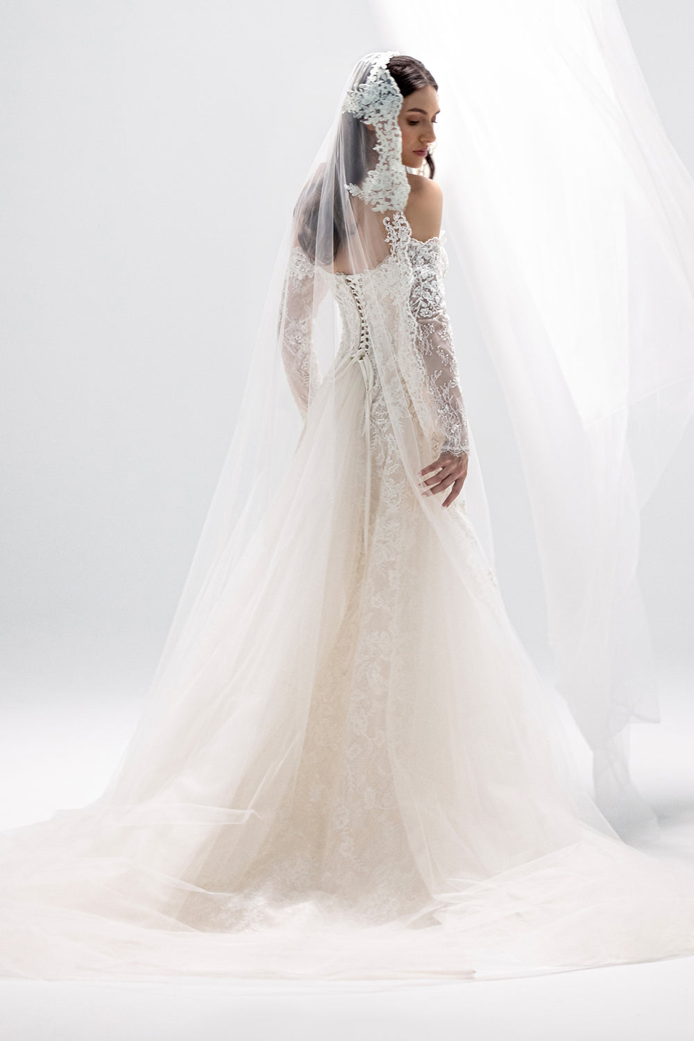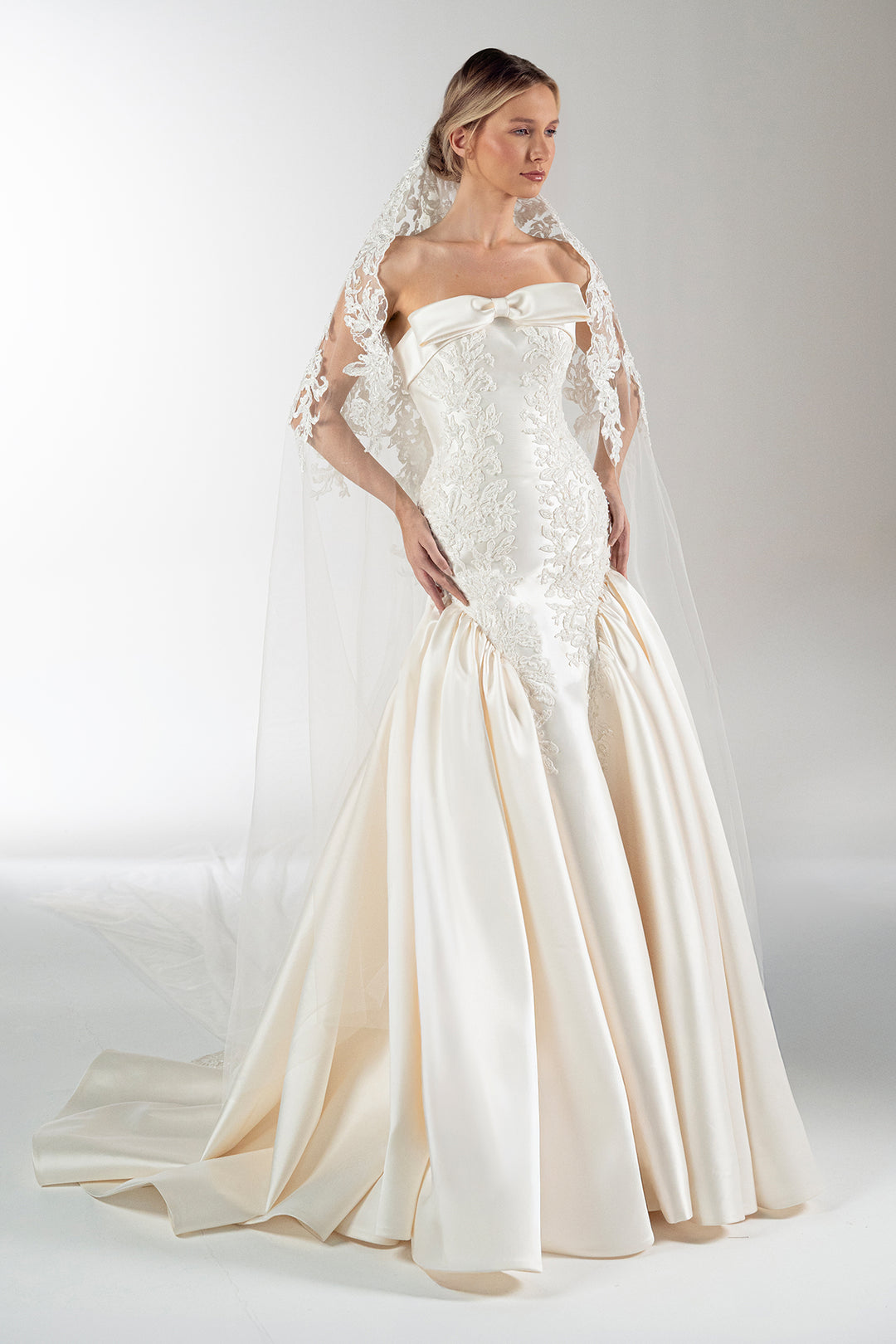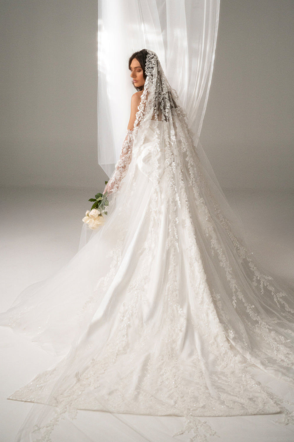 Mikado Gown with Lace Appliqué and Embroidered Veil
