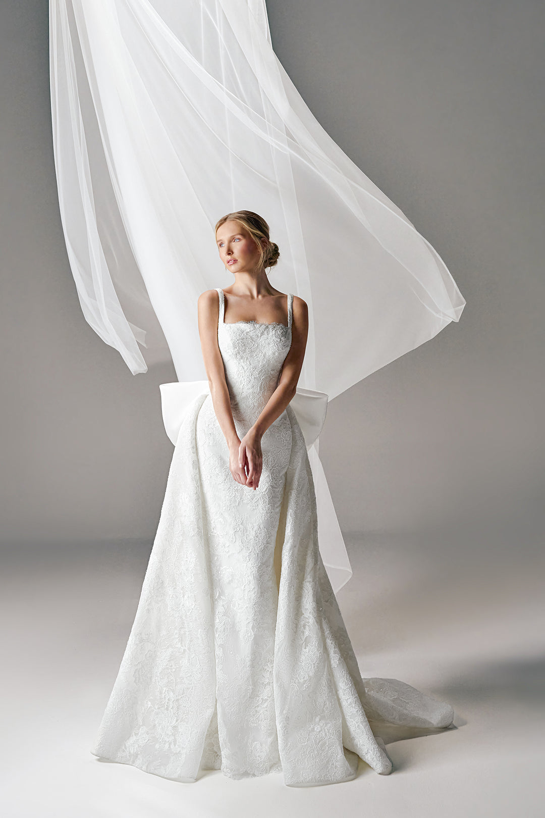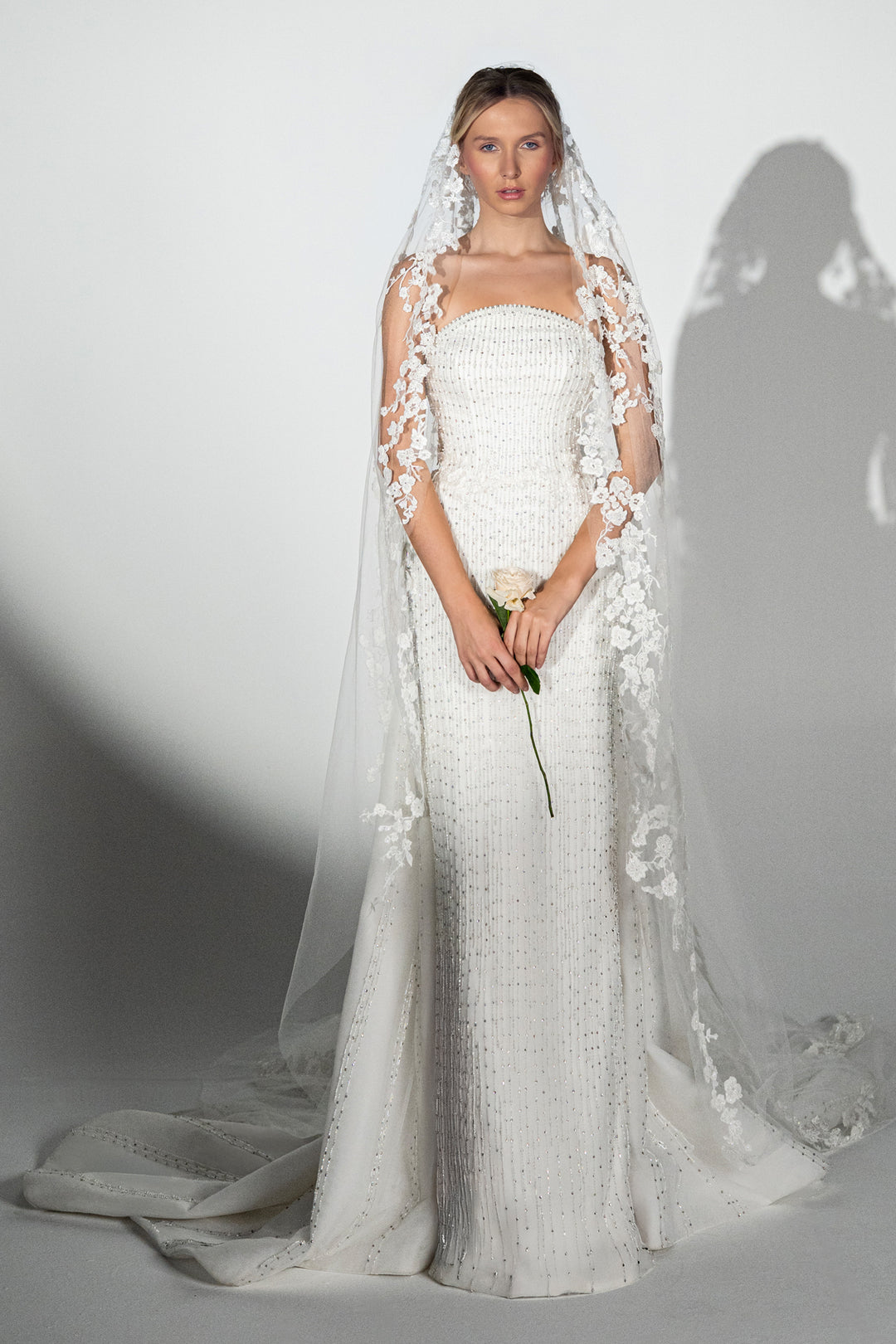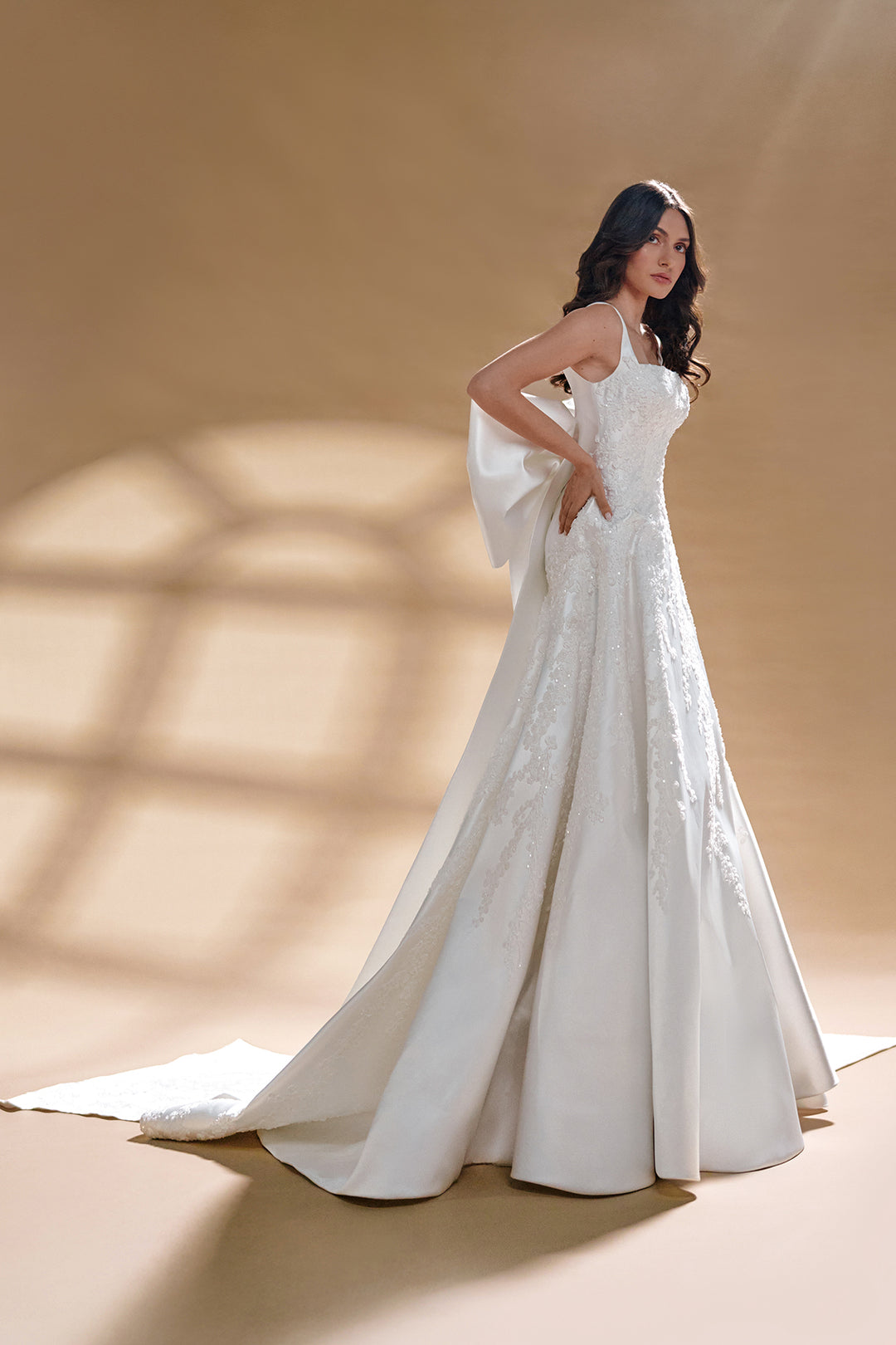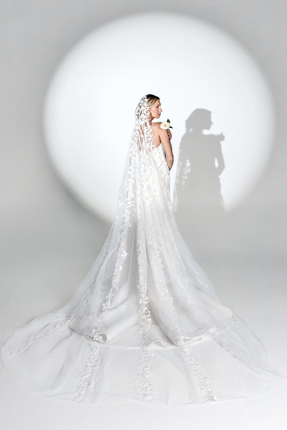 Mikado Gown with Lace Appliqué and Embroidered Veil