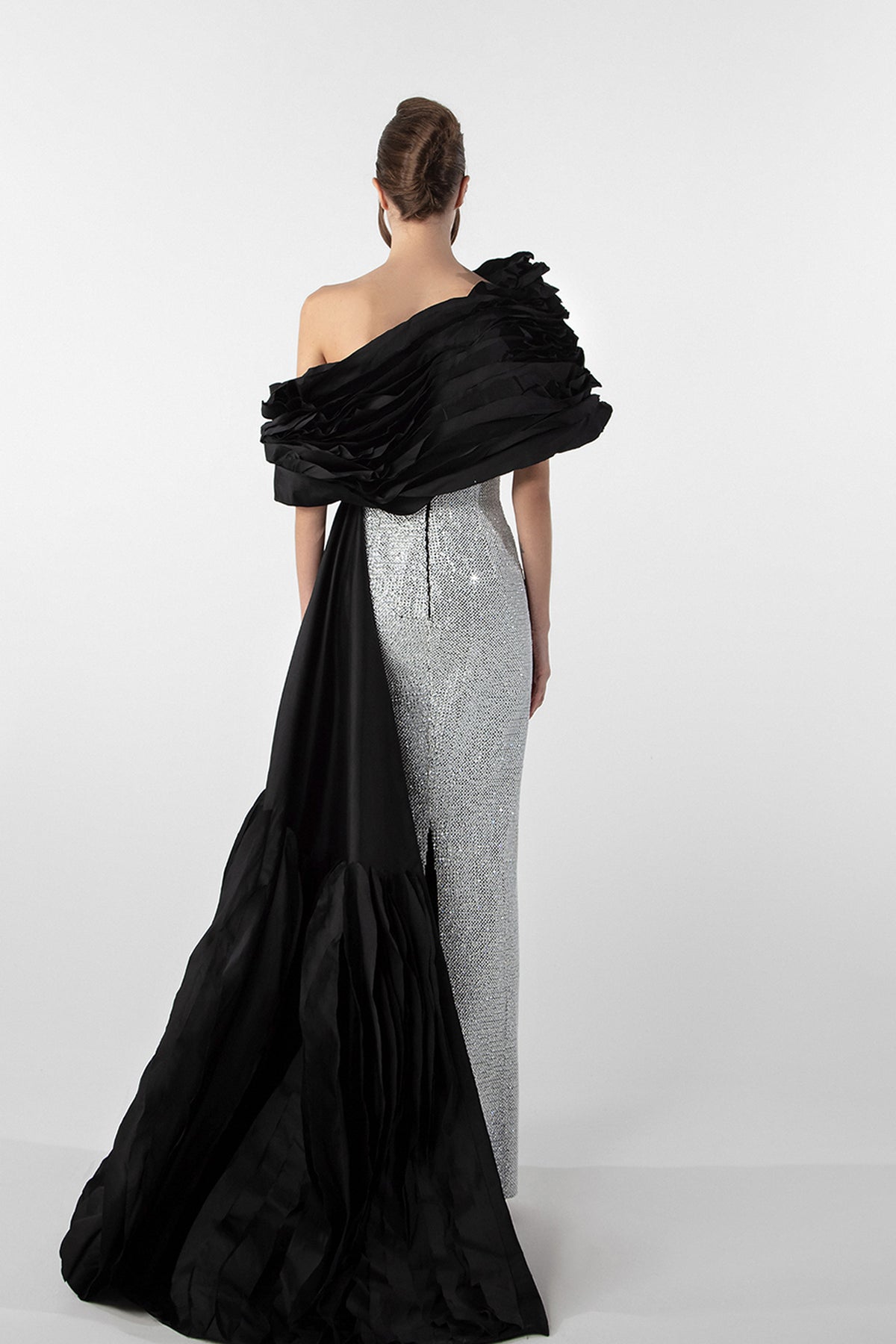 Crystal Embellished Column Dress with Tulle Cape