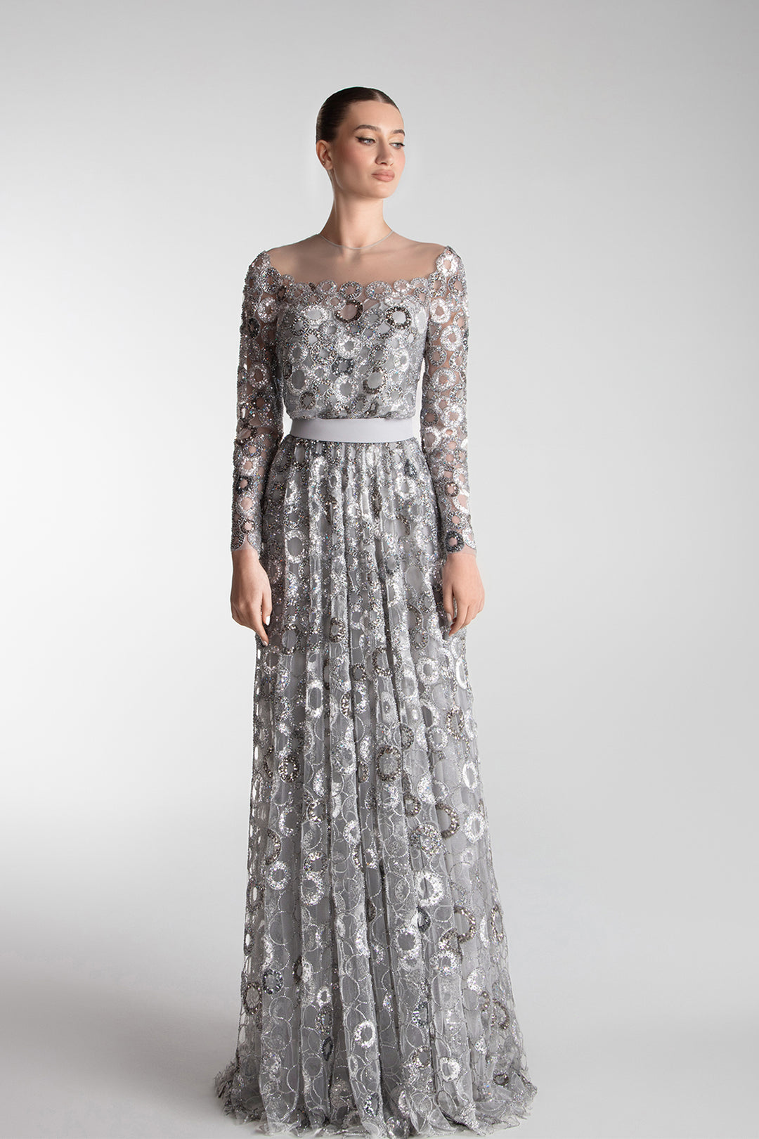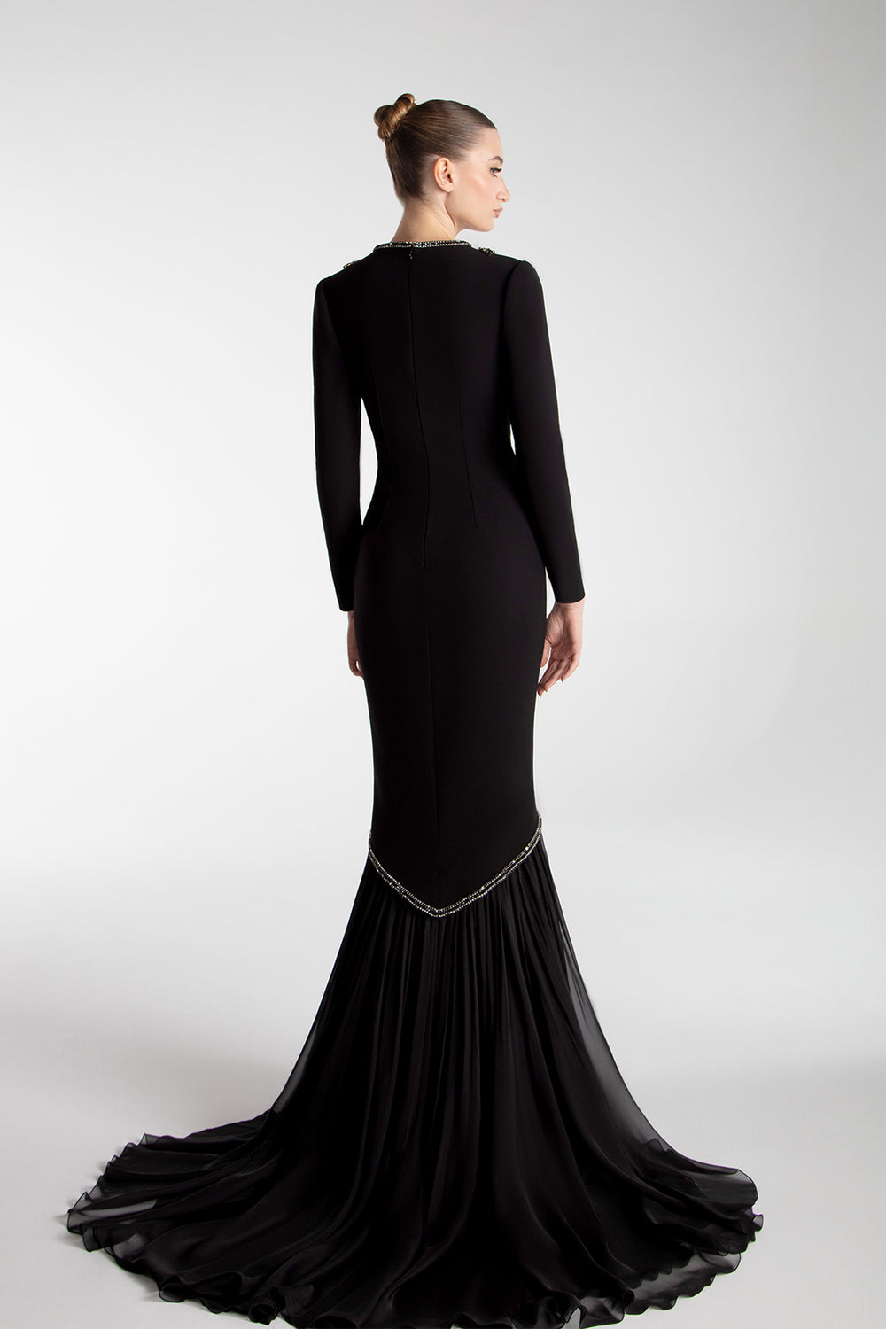 Cape-Cut Gown With Embroidered Tulle Overlay