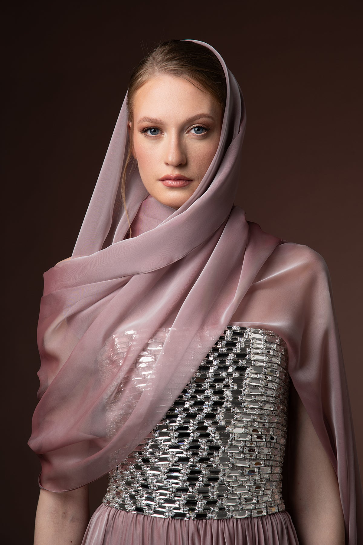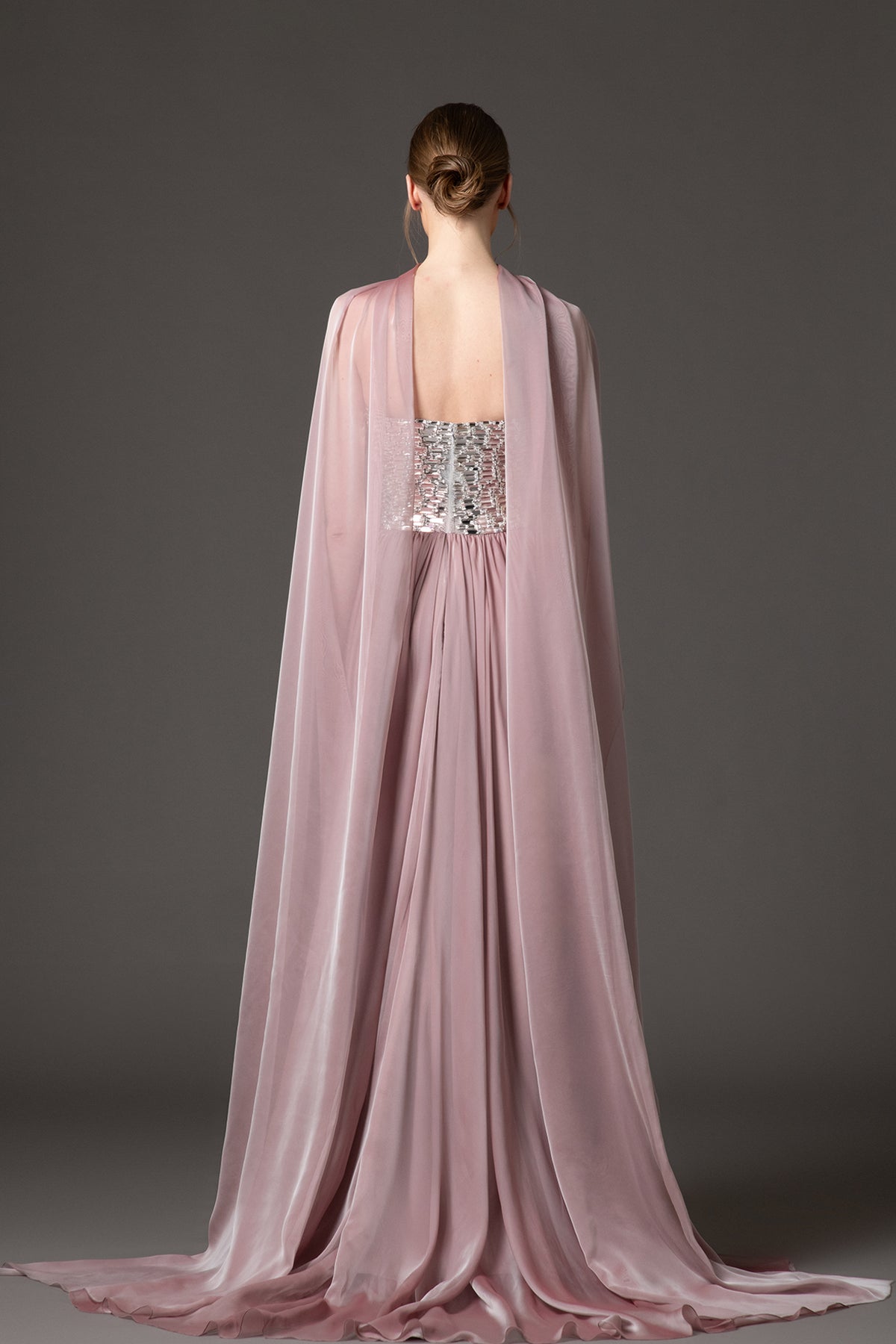 Vintage rose baguette corset dress. Featuring a chiffon skirt with neckline scarf.