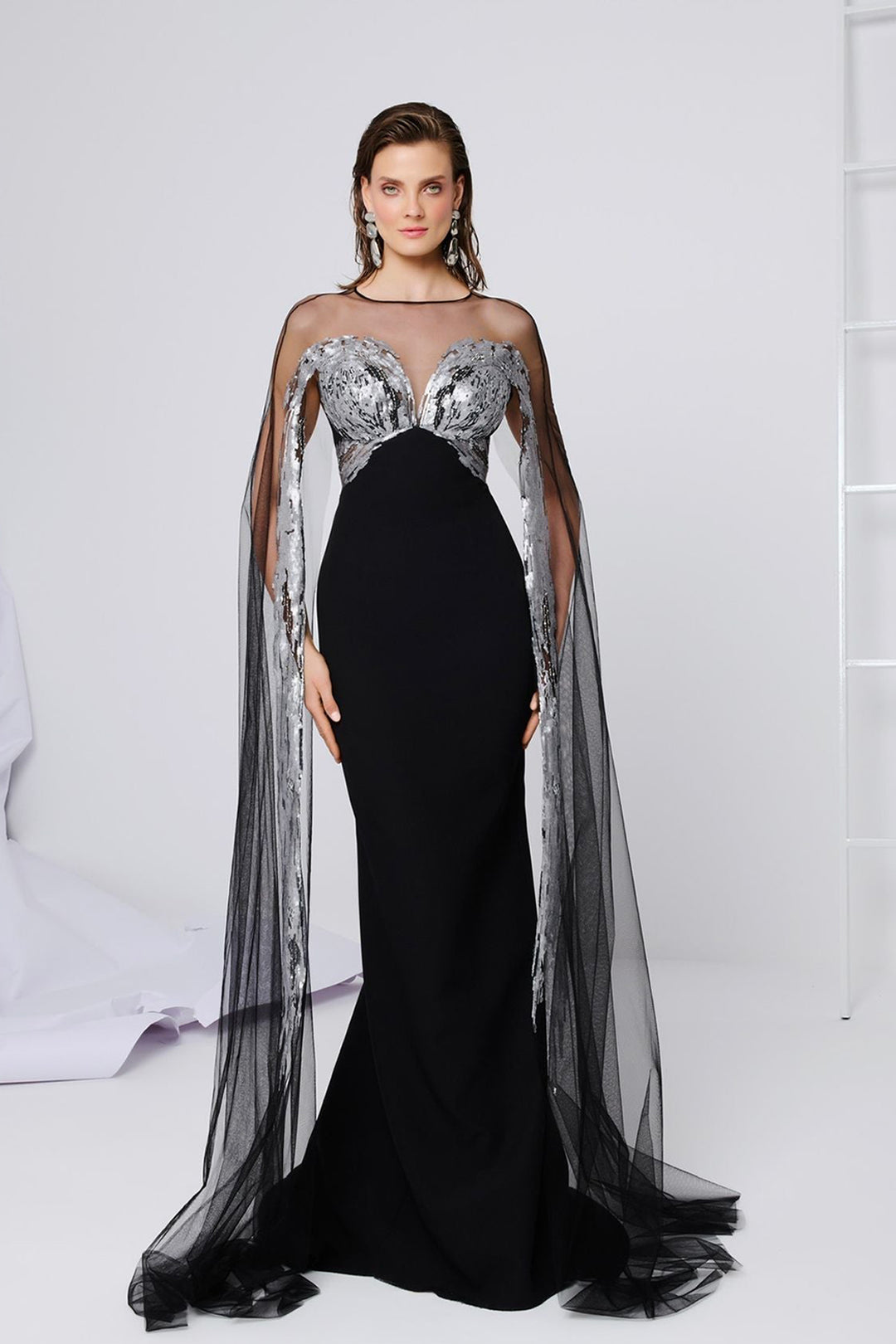Crepe Sleeveless Mermaid Dress with Tulle Cape