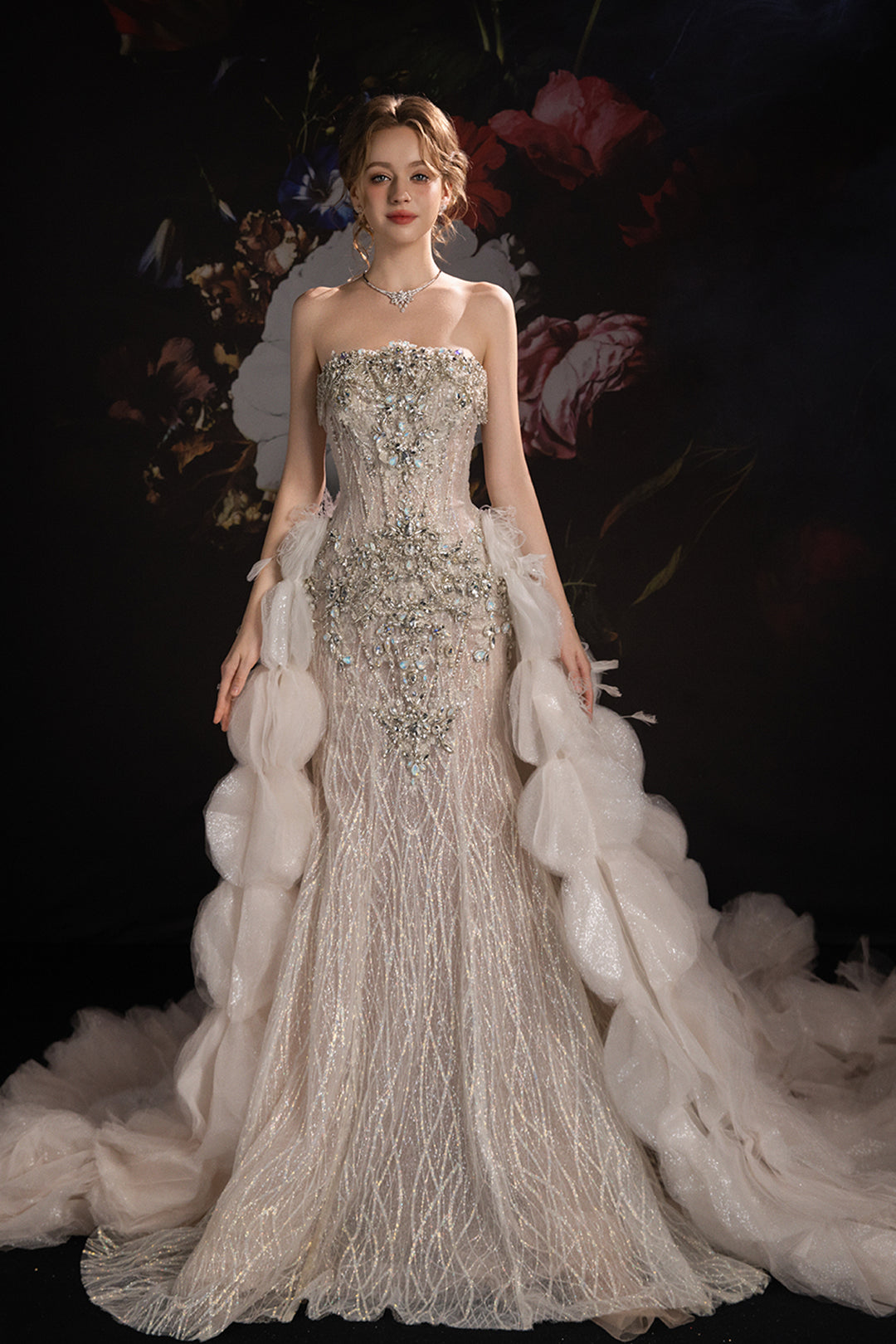 Strapless Neckline and Crystal Floral Embroidery Dress