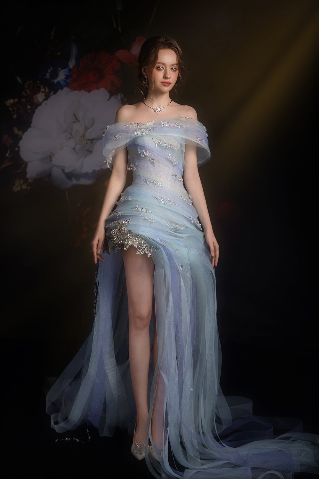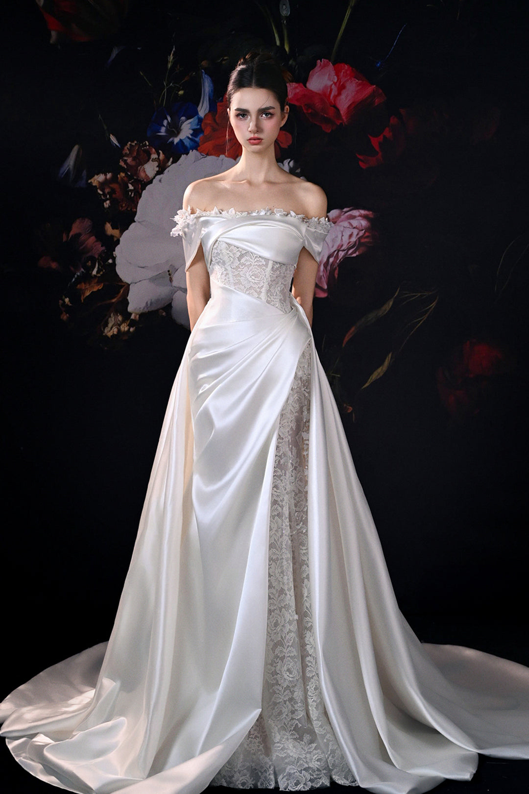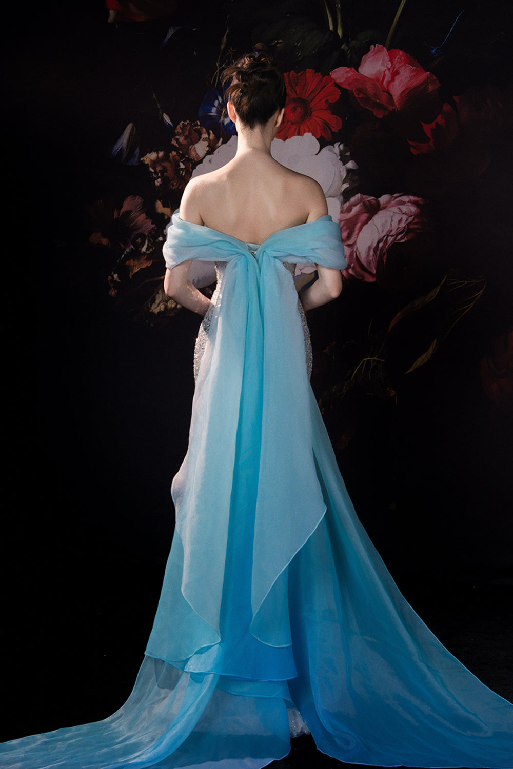 Off-The-Shoulder Mermaid Dress in Beaded Embroidery