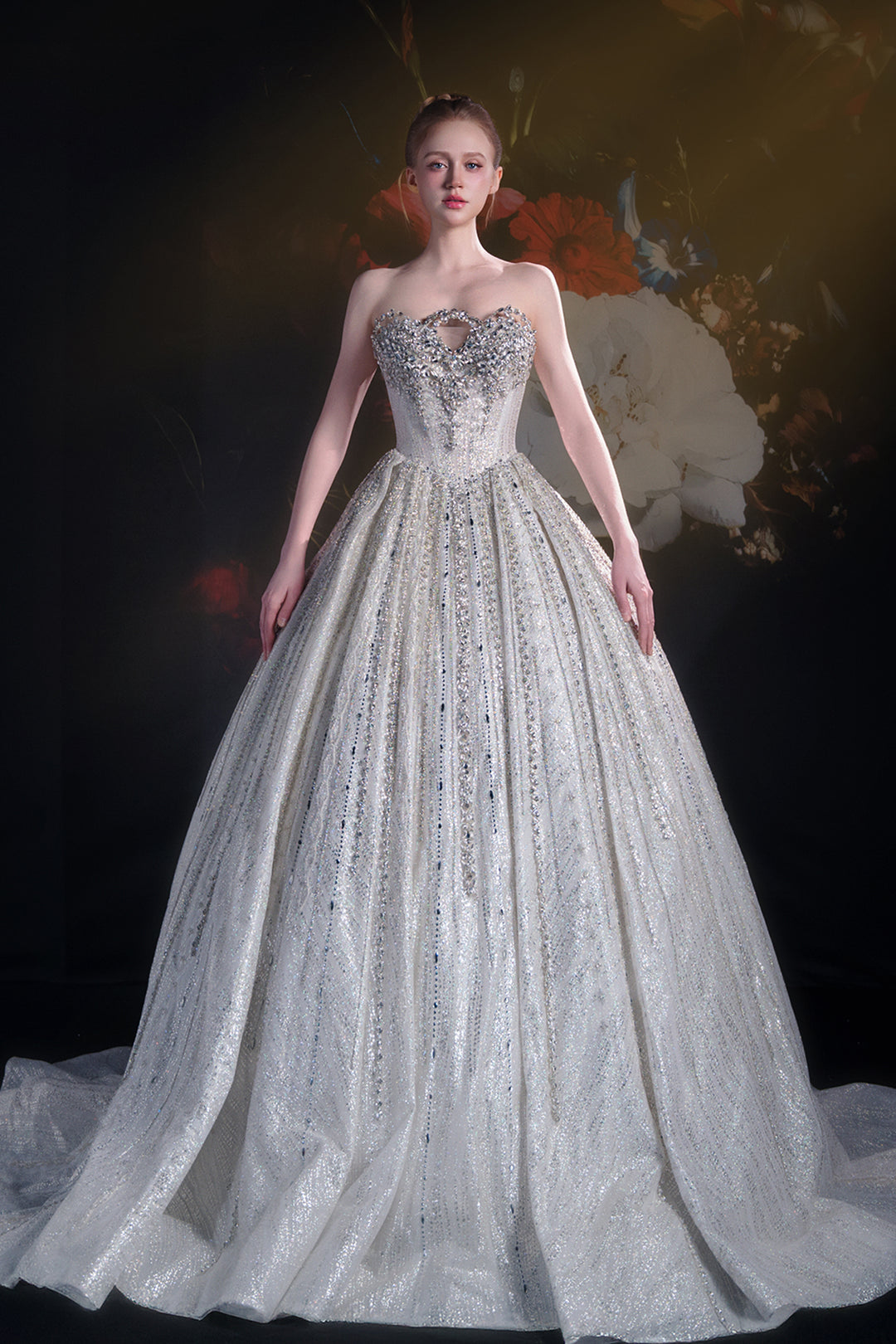 Strapless Sweetheart Neckline and Crystal Embroidery Dress