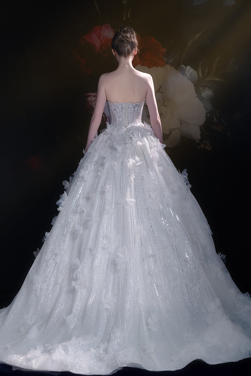 A-Line Dress with Crystal Embellishment and 3D Florals