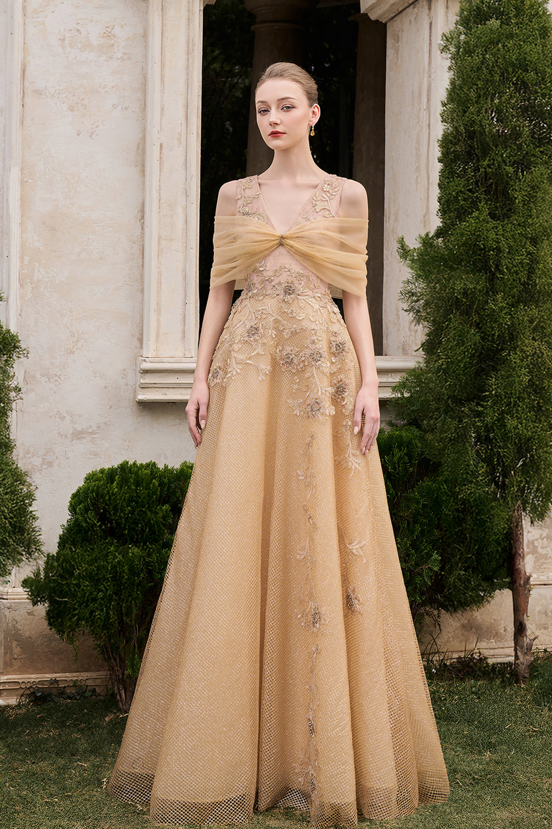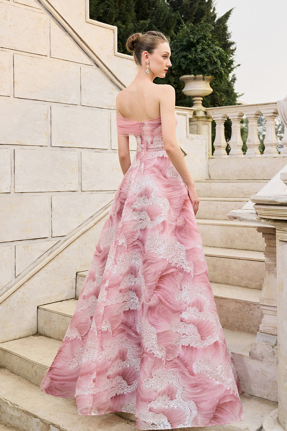 Off-The-Shoulder Cloudy Flared A-Line Dress