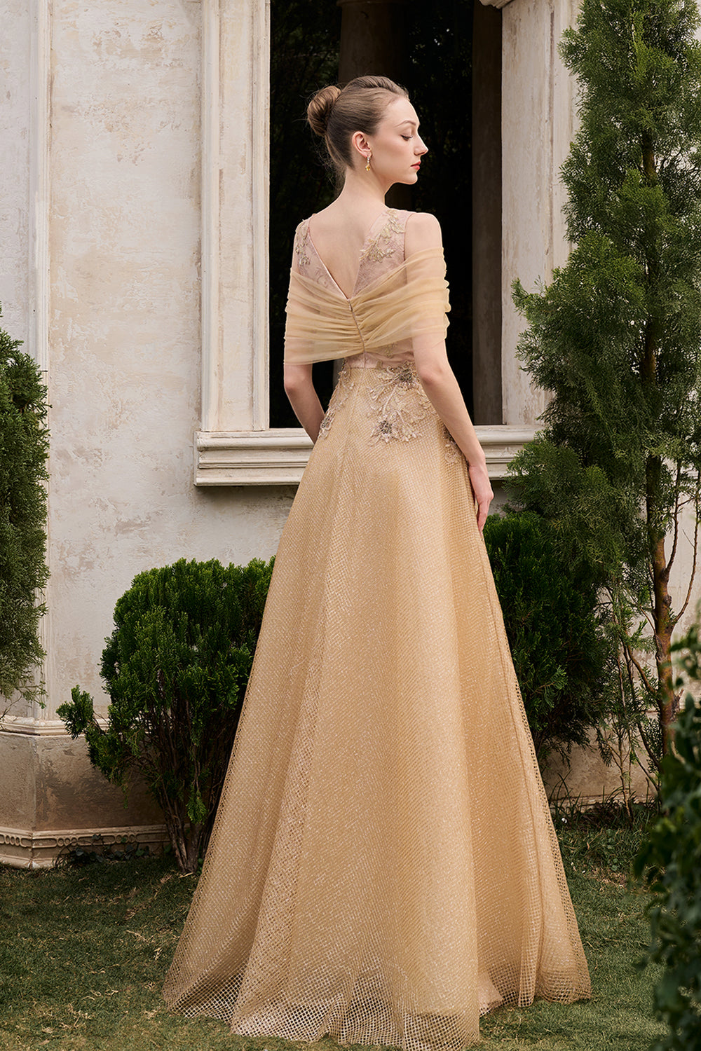 Long Flowy Sleeves Cape Crystal-Embellished Dress