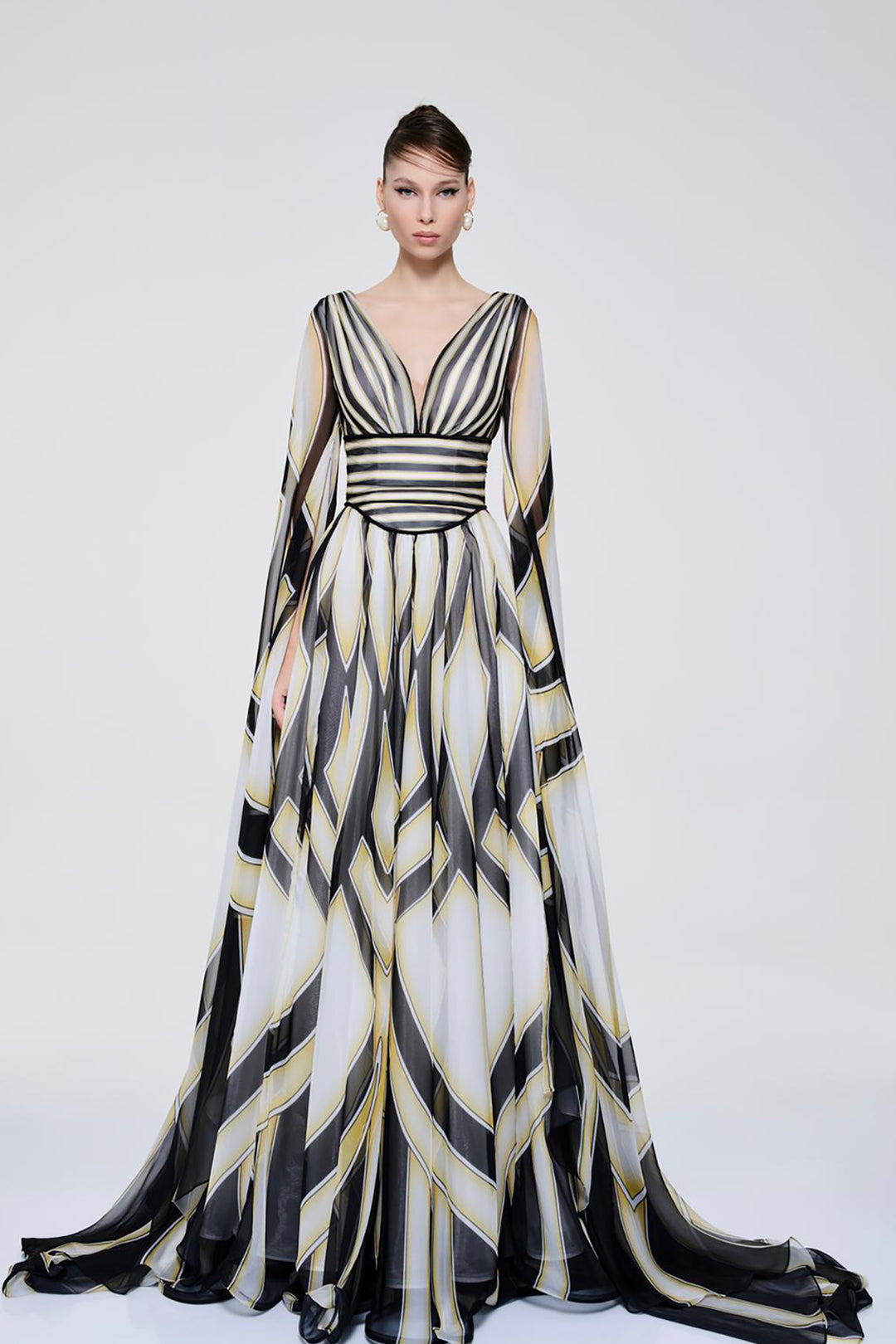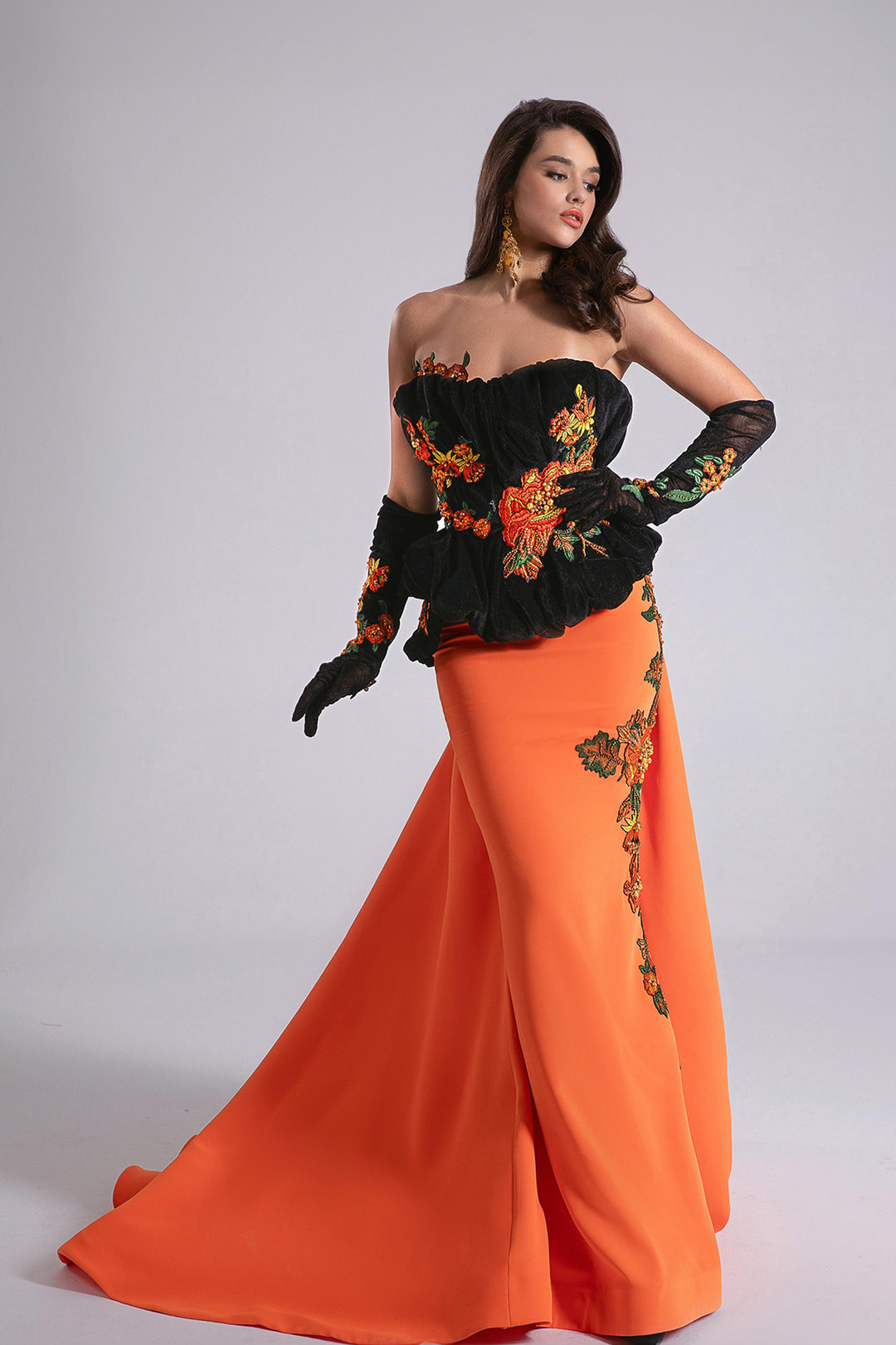 Mermaid Dress with Strapless Bodice and Cape Sleeve