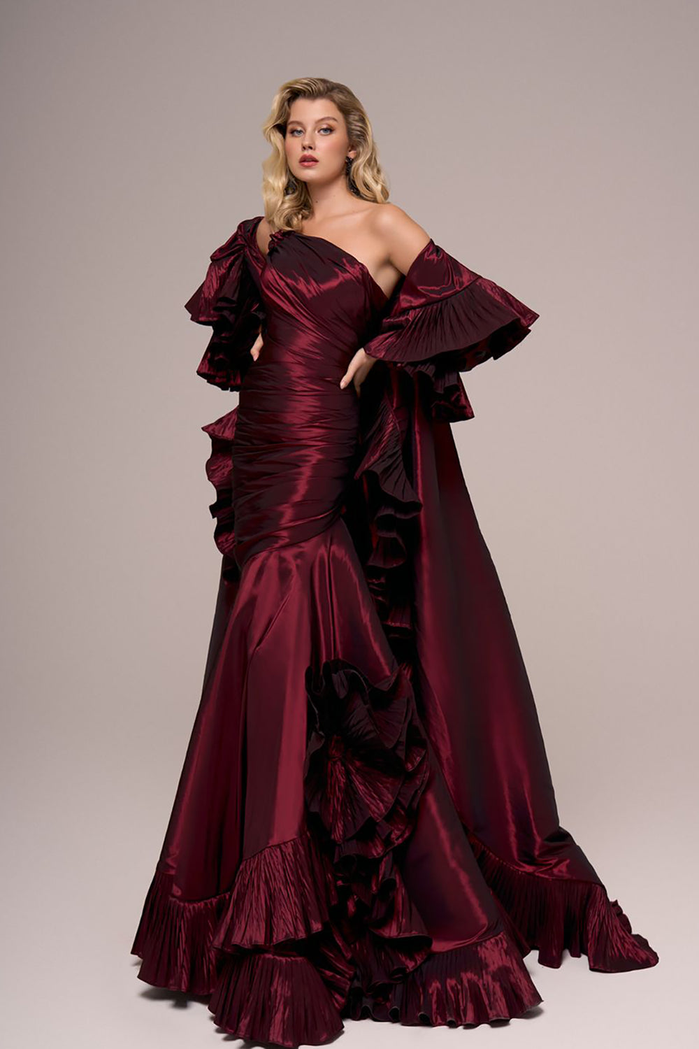 One-Shoulder Mermaid Dress with Off-The-Shoulder Neckline