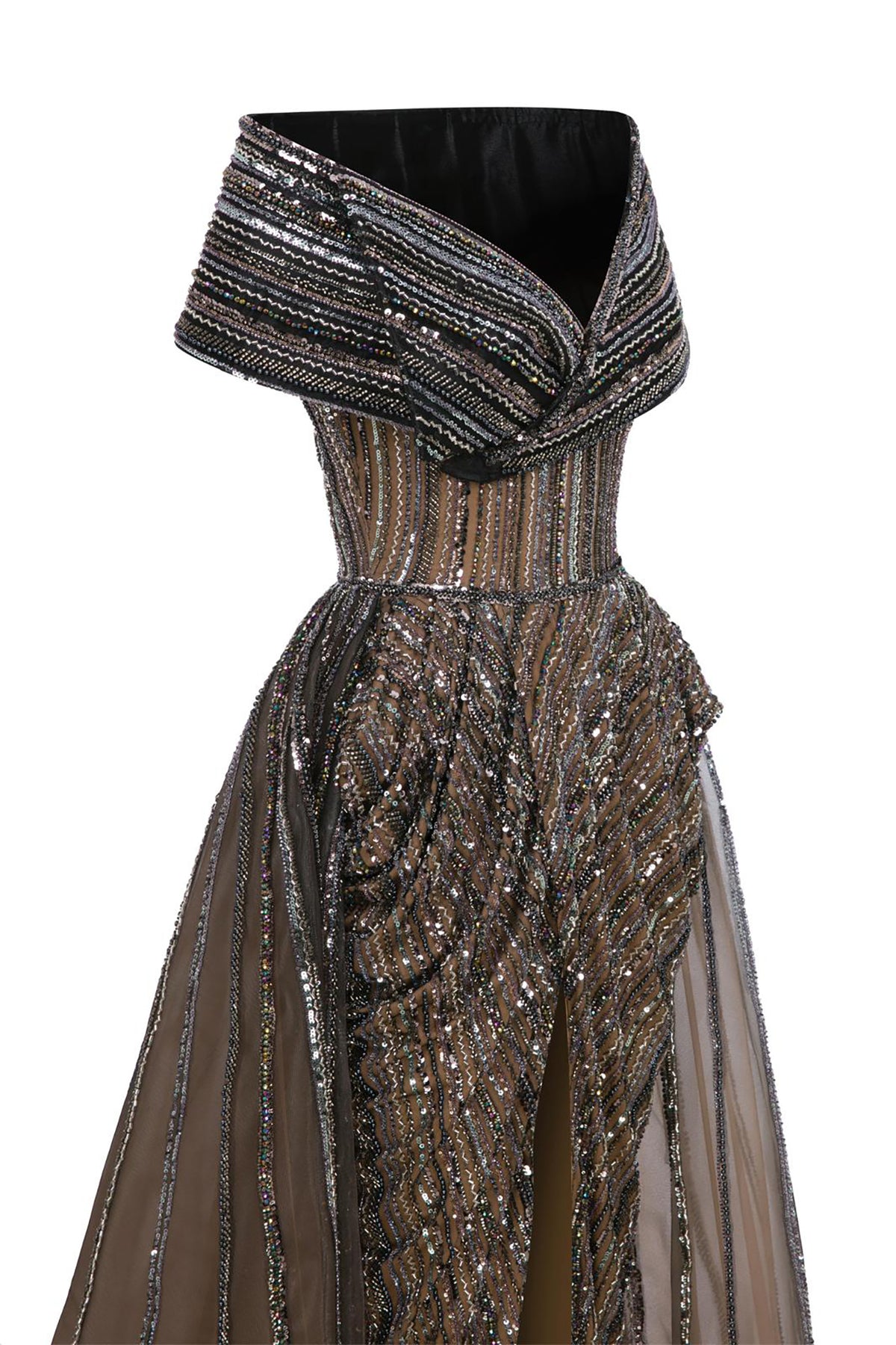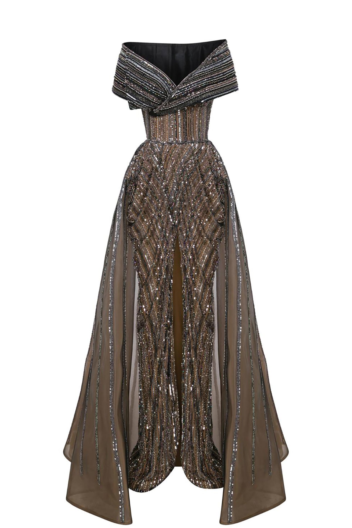 Mint green mermaid satin long dress. Featuring an off-the-shoulder neckline that gently curves across the collarbones. Complemented with a fitted and structured to sculpt the torso, with clean seams that emphasize an elongated vertical silhouette.