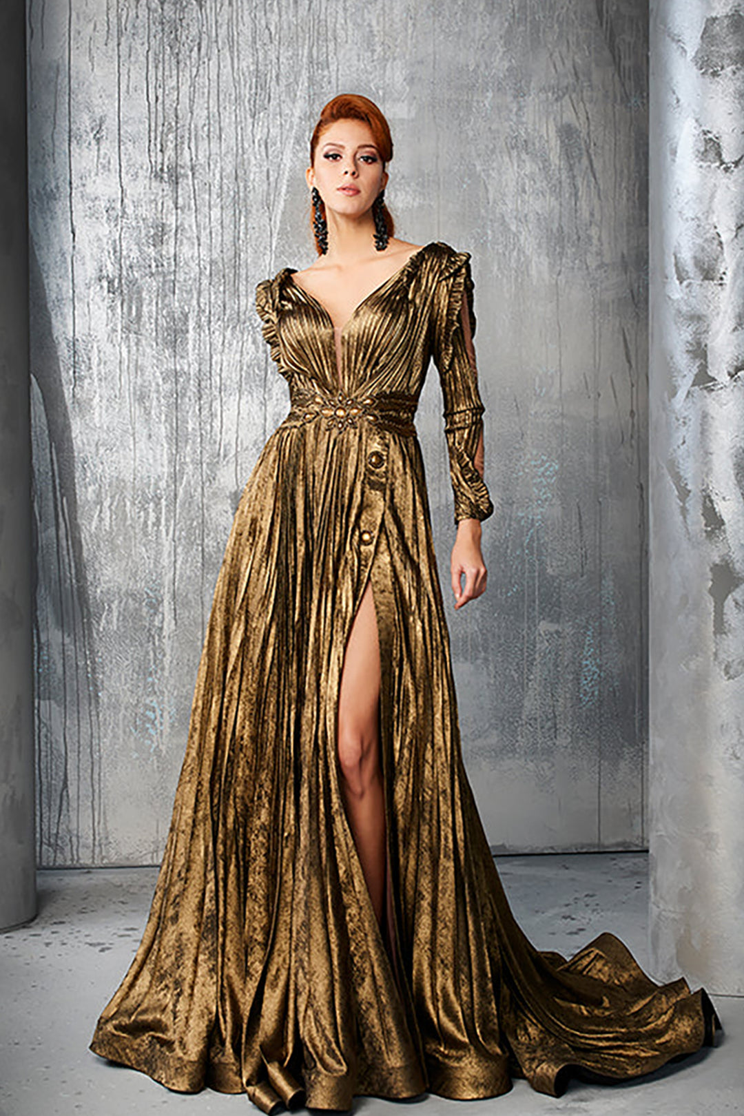 Metallic Crepe Long Dress