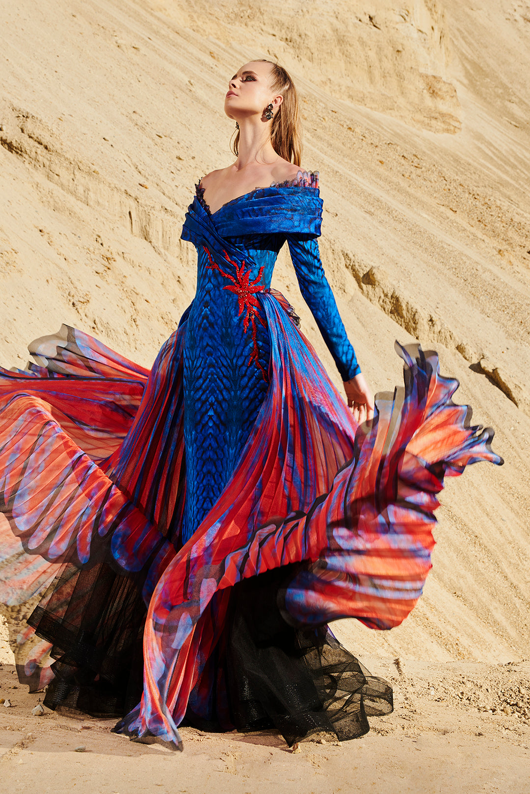 Mermaid Cape Off-The-Shoulder Dress