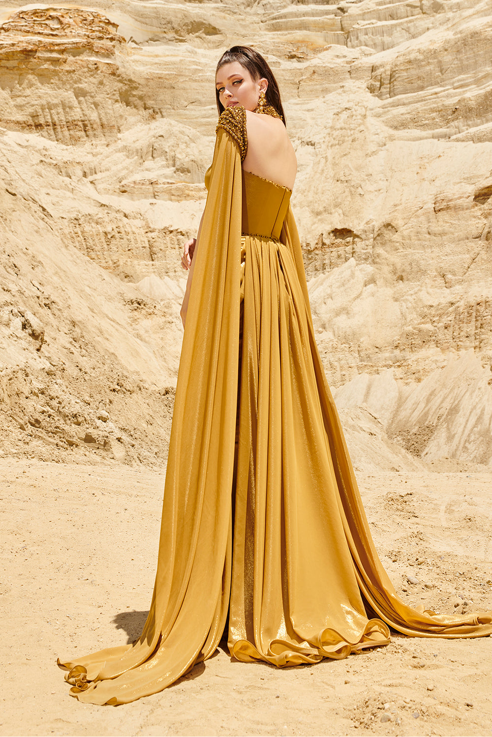 Mermaid Dress with Cape Drape