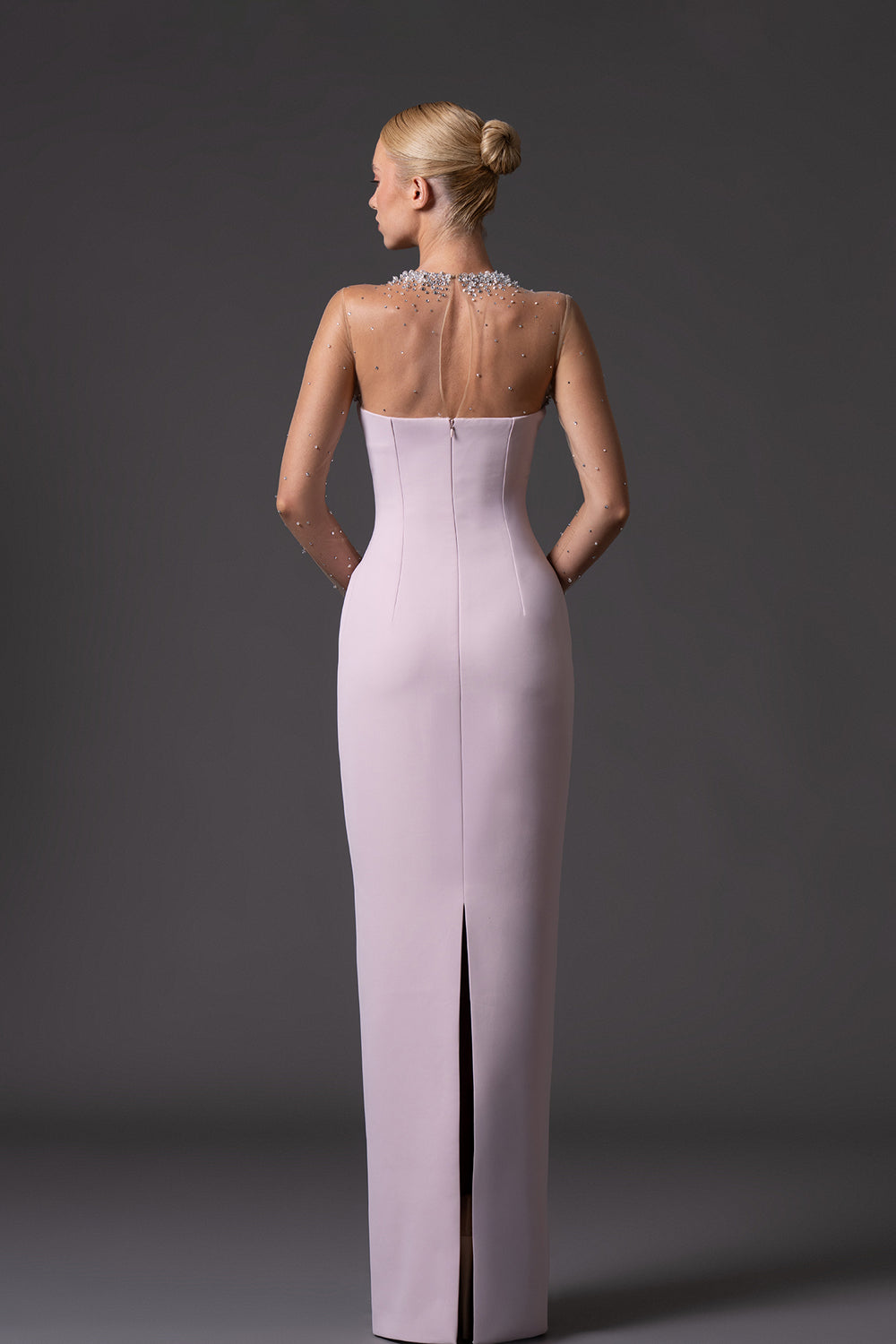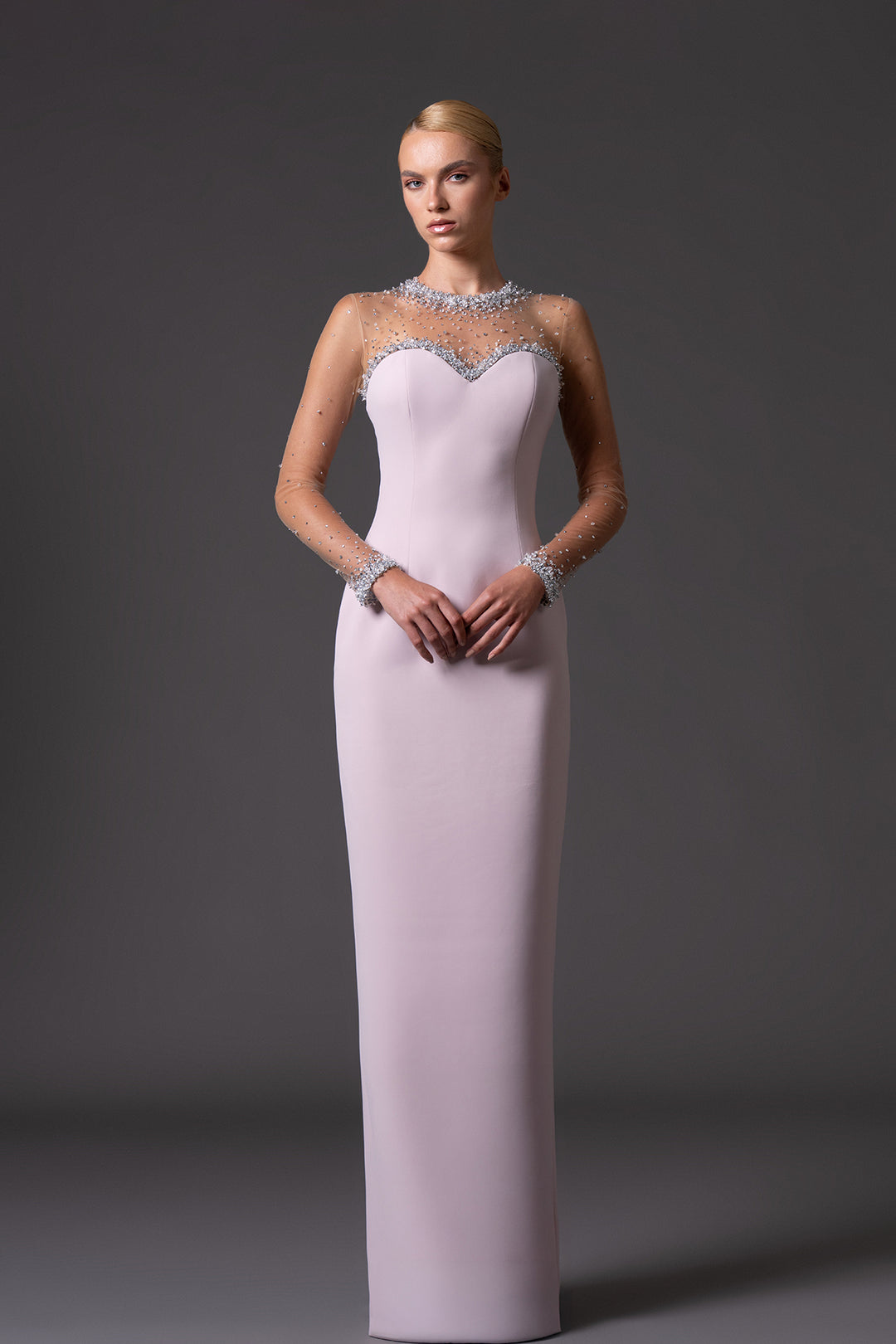 Crêpe Dress with Crystal Embroidery and Sleeves