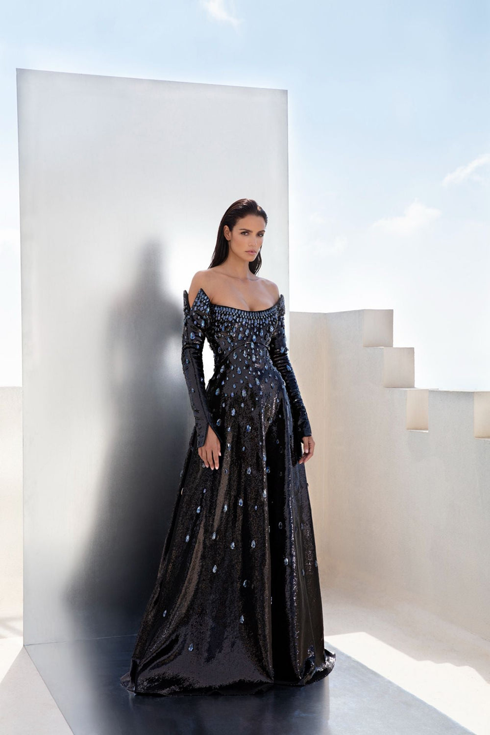 Long-Sleeved Off-The-Shoulder A-line Dress