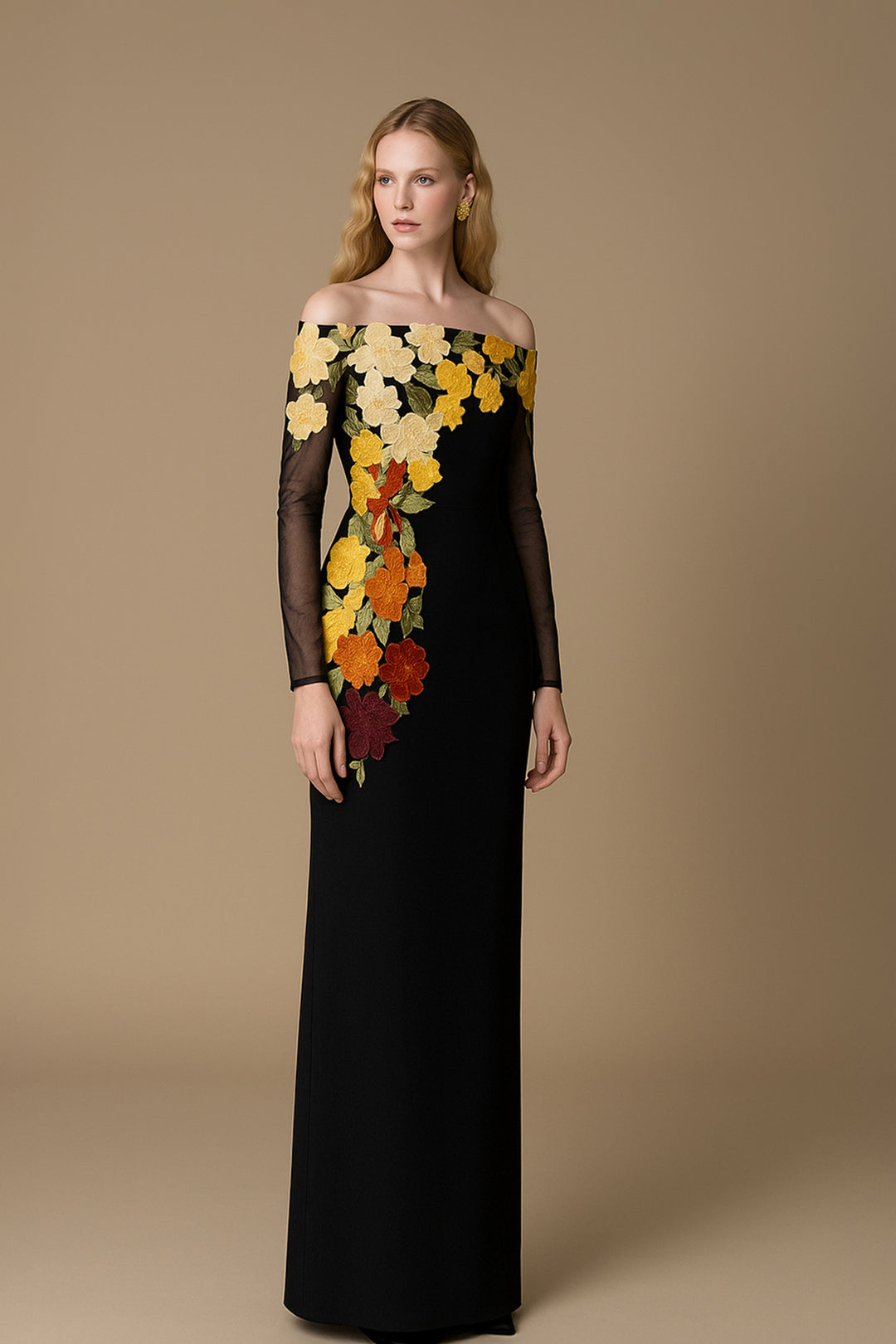 Off-The-Shoulder With A-Line With Floral Embroidery