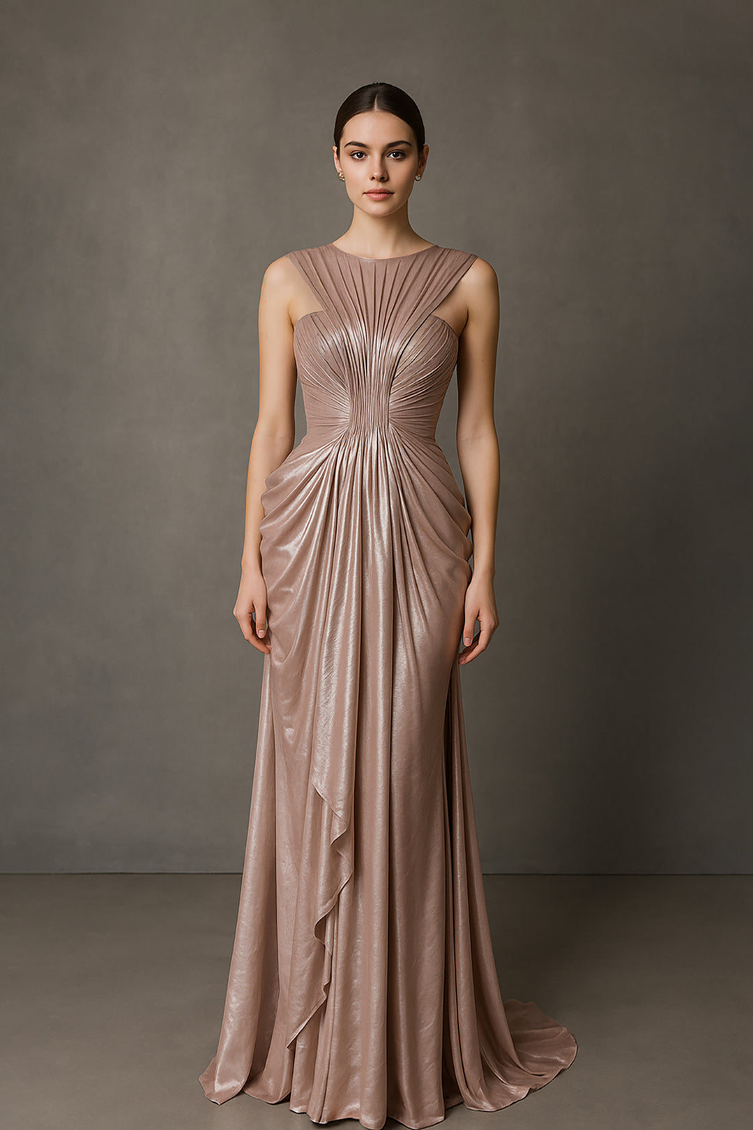 Sculpted Pleated Bodice with Cascading Satin Dress