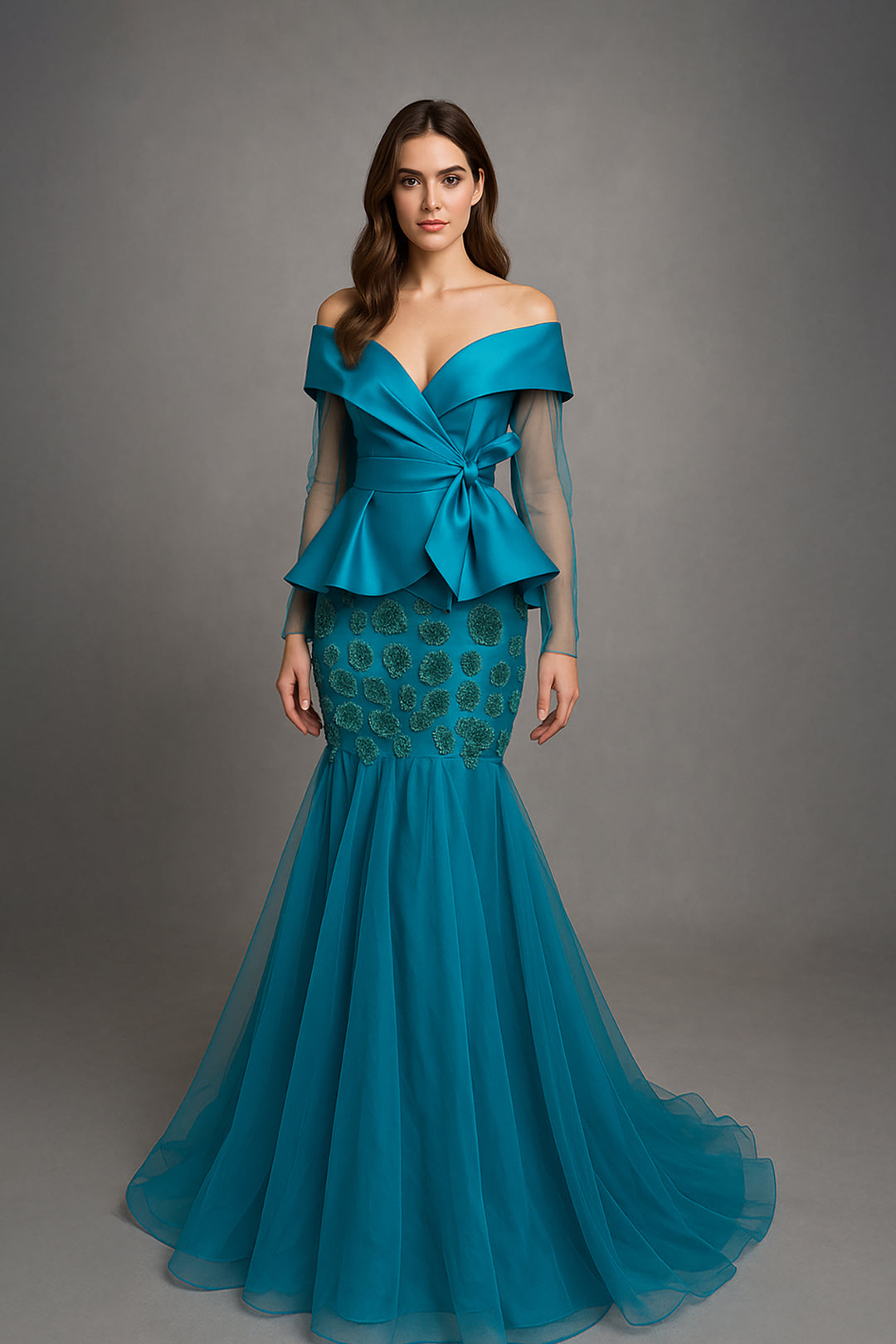 Off-The-Shoulder Mermaid Dress with Draped Sleeves