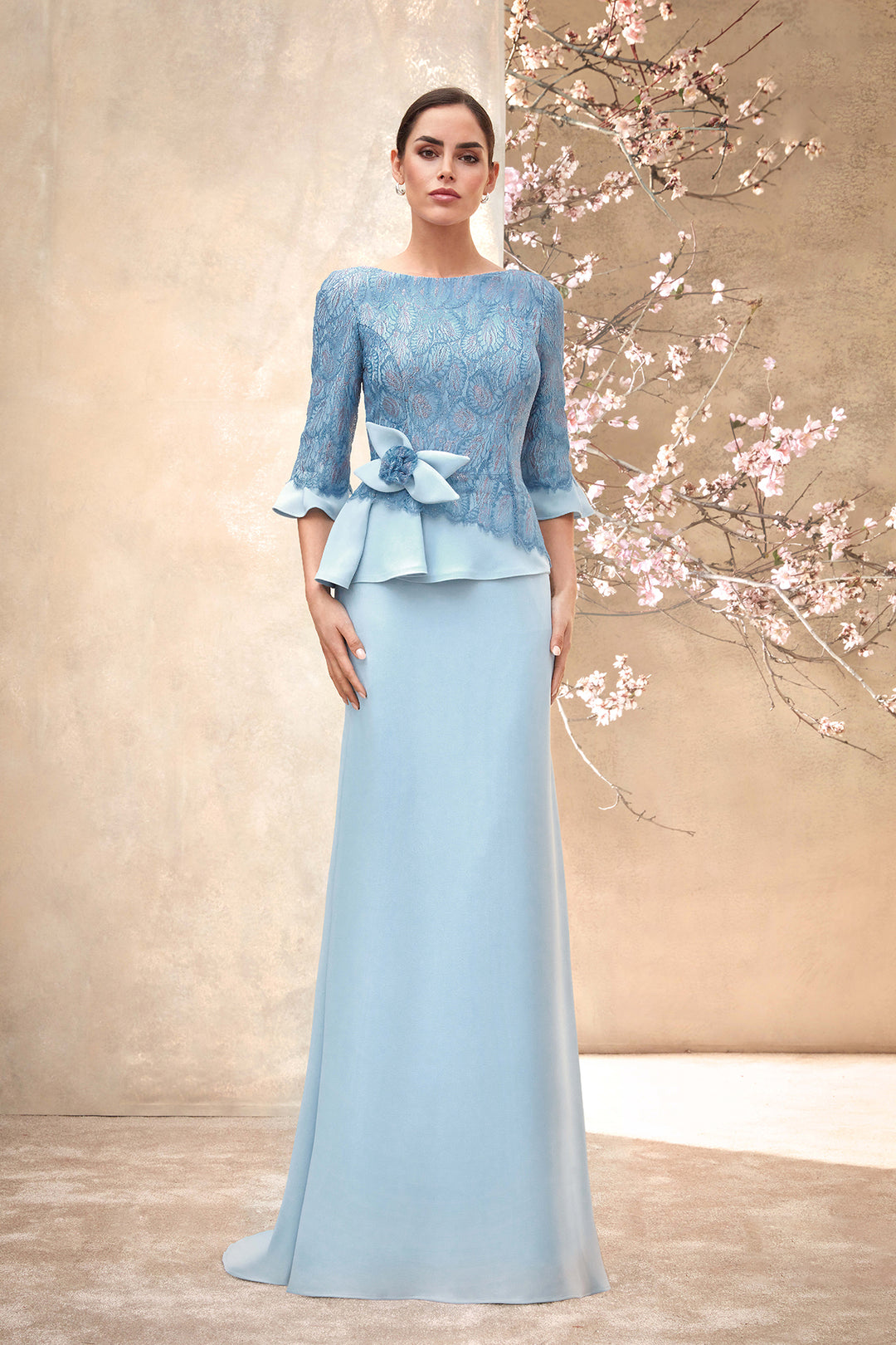 Mermaid Crepe Dress with Chantilly Lace and 3D Flowers