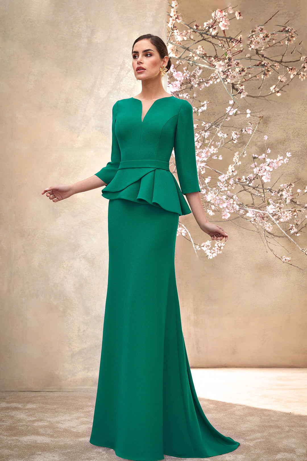 Mermaid Crepe Dress with Peplum