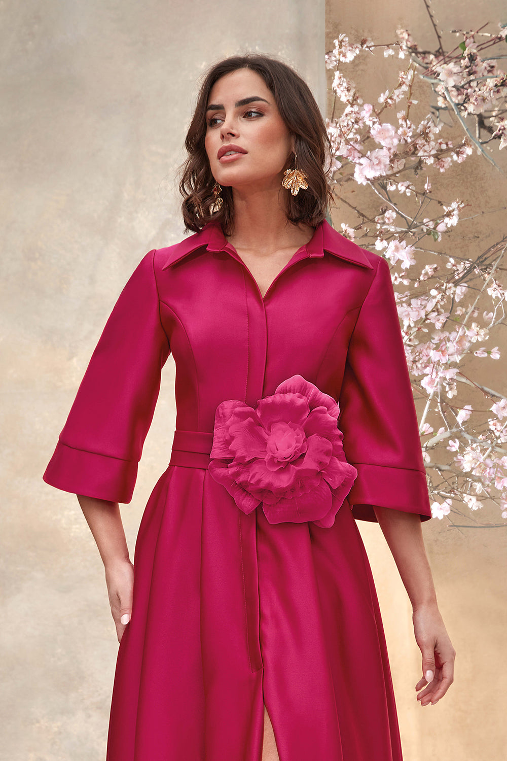 Shirt Dress with Organza Flower and Pleated Skirt