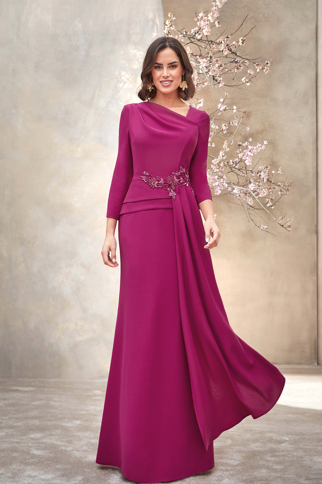 Crepe Mermaid Dress with Jewelled Appliqué