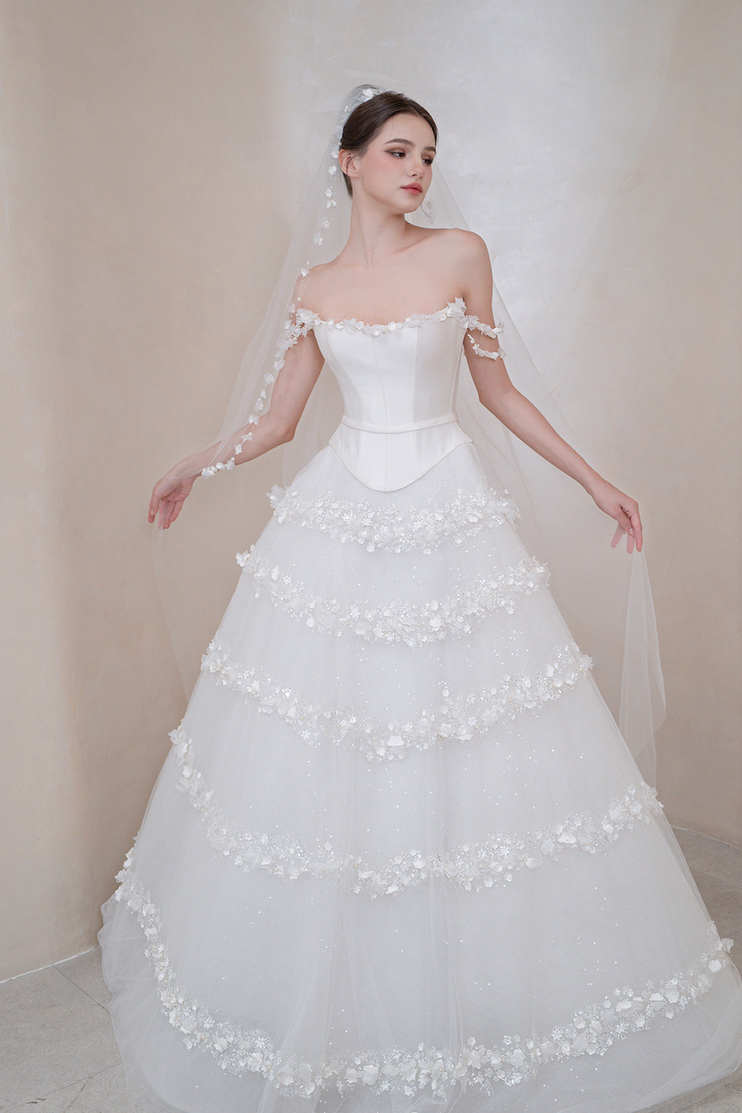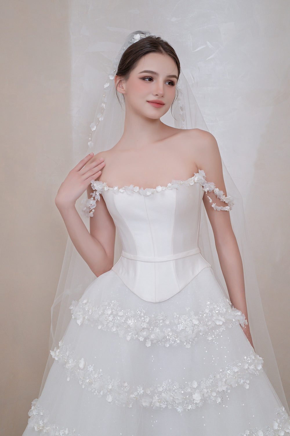 Off-The-Shoulder Neckline with 3D floral Design