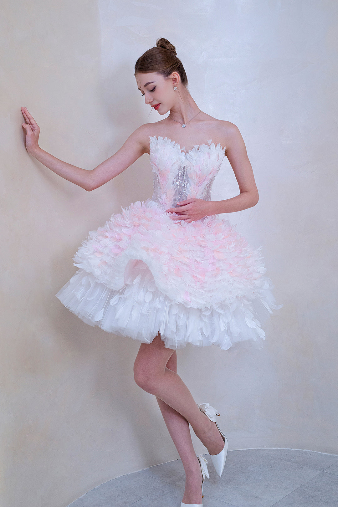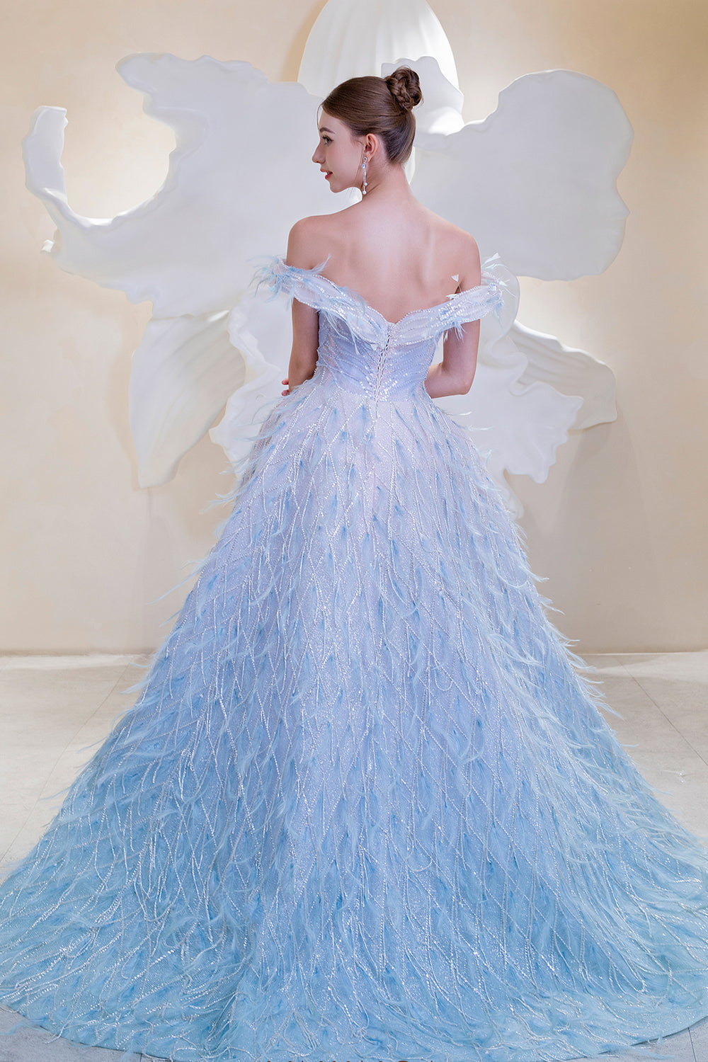 Off-the-Shoulder Feather Dress