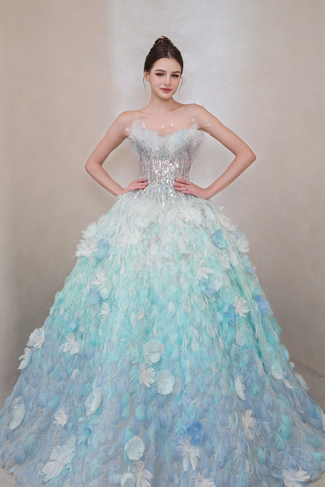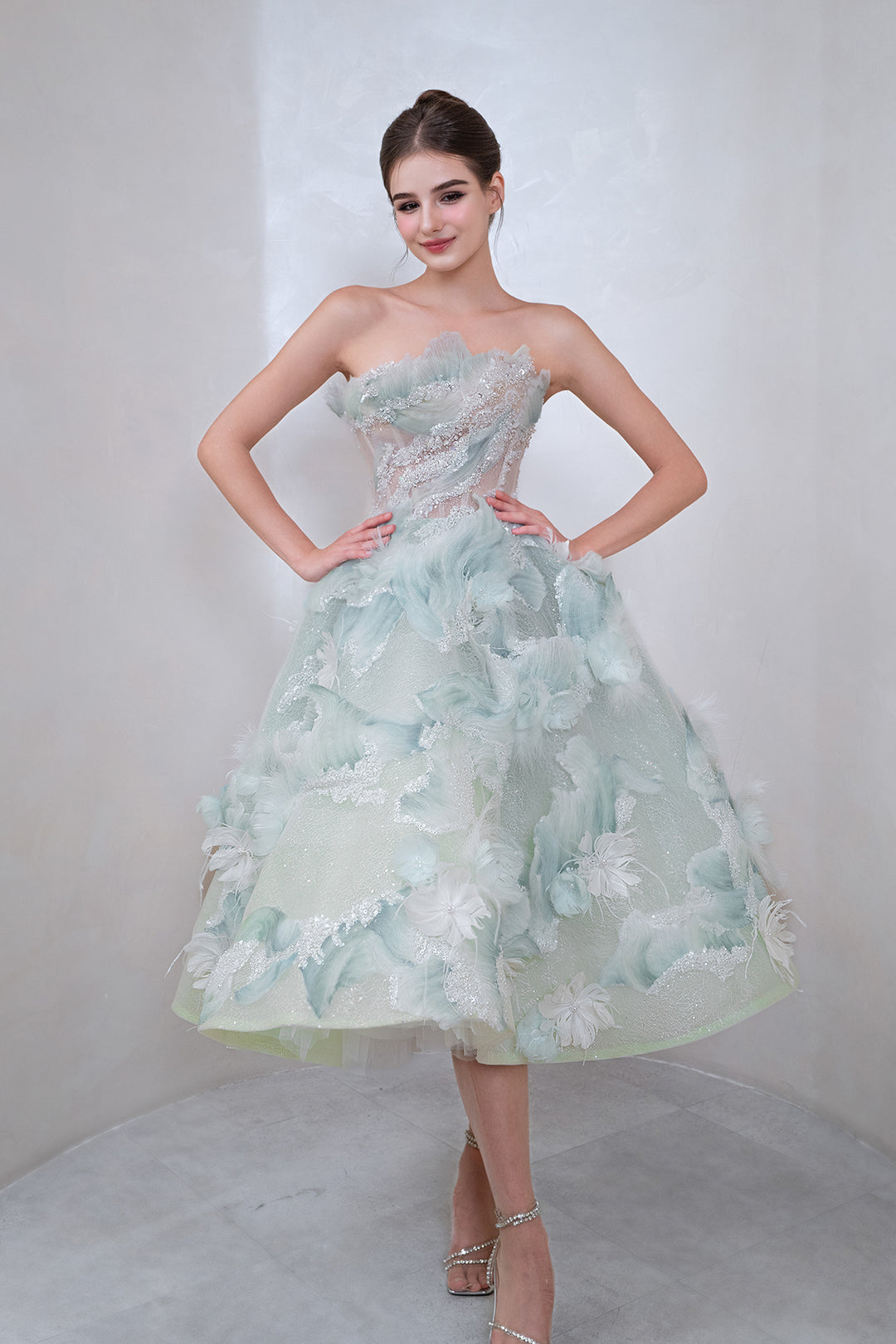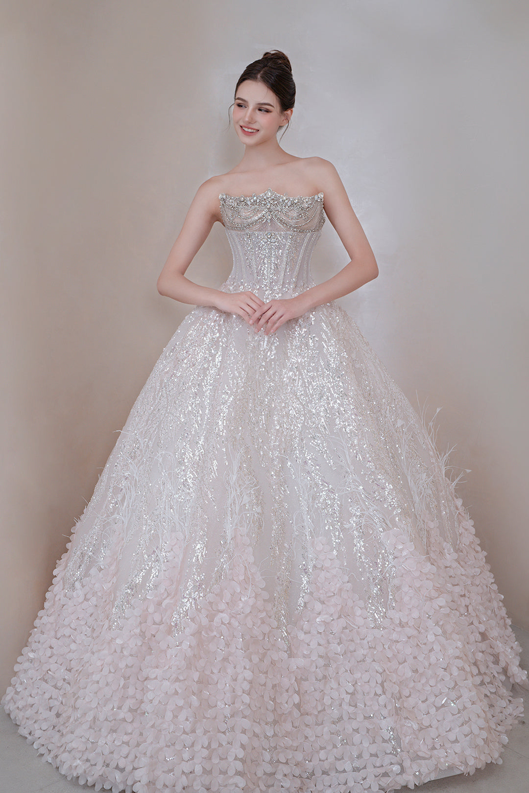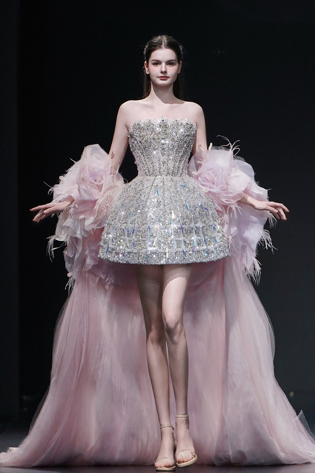 Strapless A-Line Dress with Asymmetric Crystal Embroidery