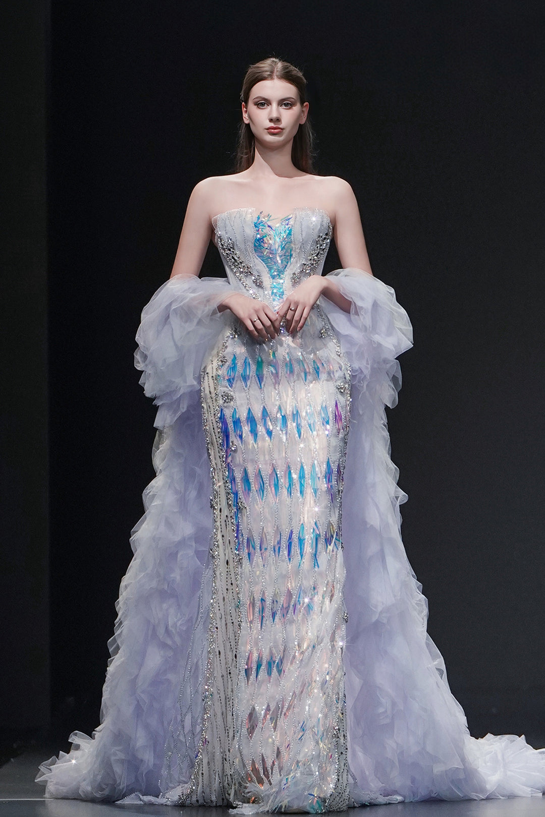 Crystal Mermaid Dress with Cape