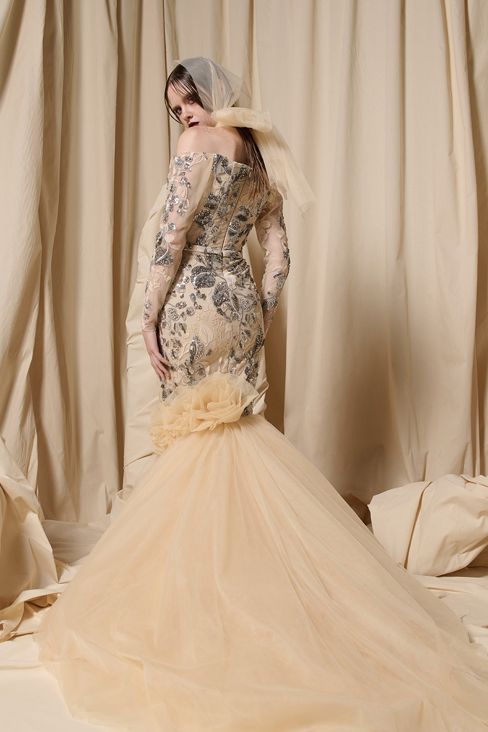 Off-The-Shoulder Mermaid Layered Tulle Fishtail and Floral Details