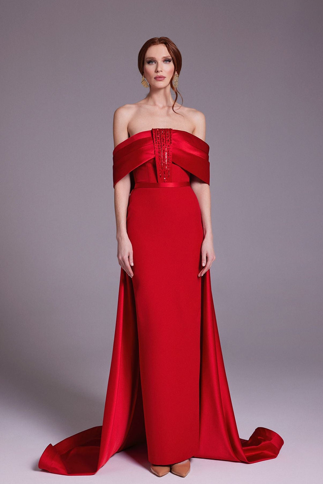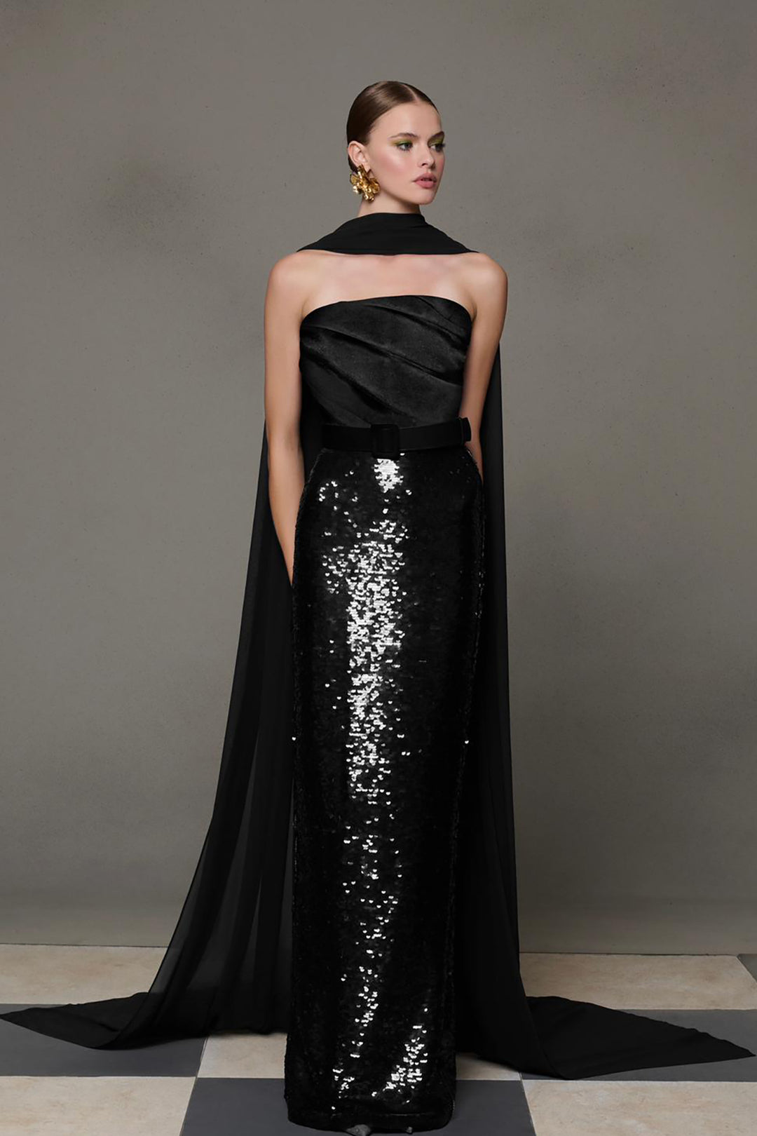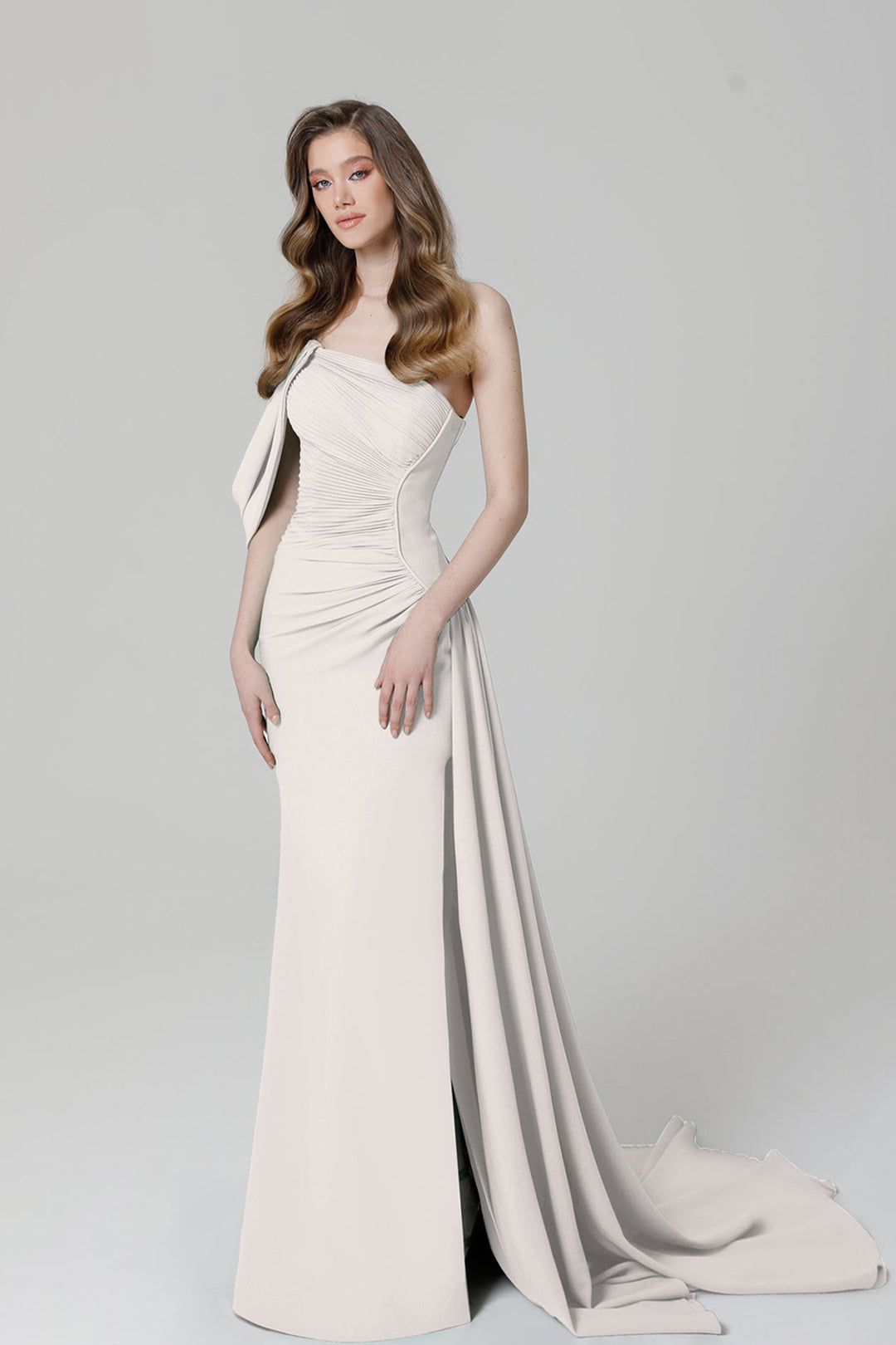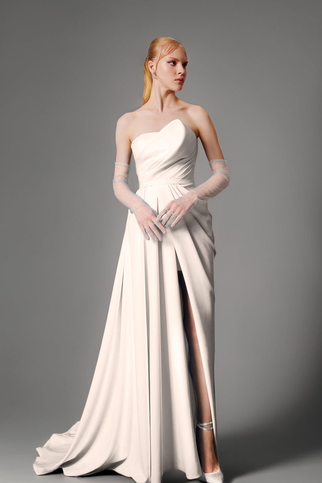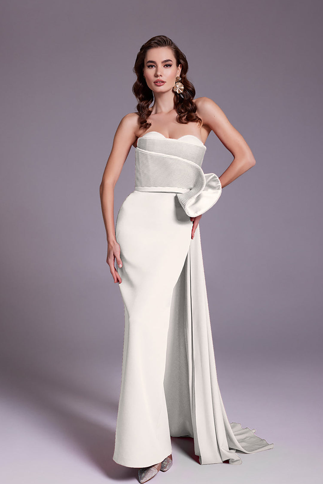Crepe Strapless Mermaid Dress with Embellished Bust