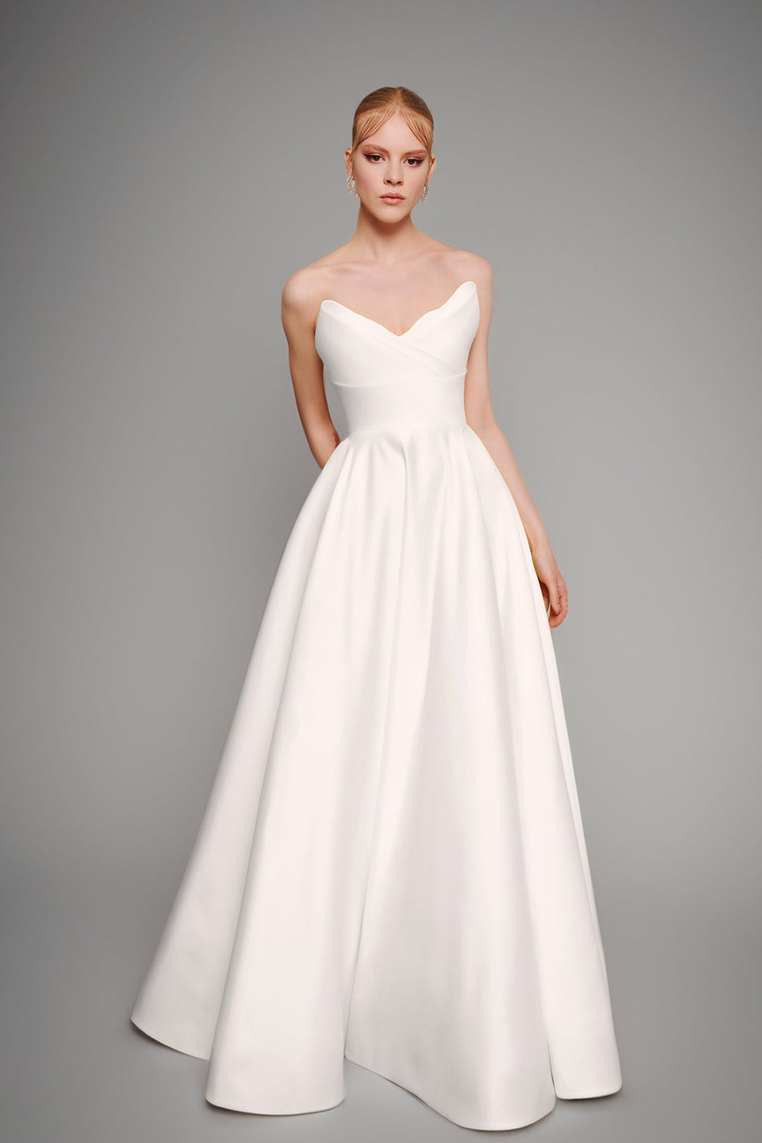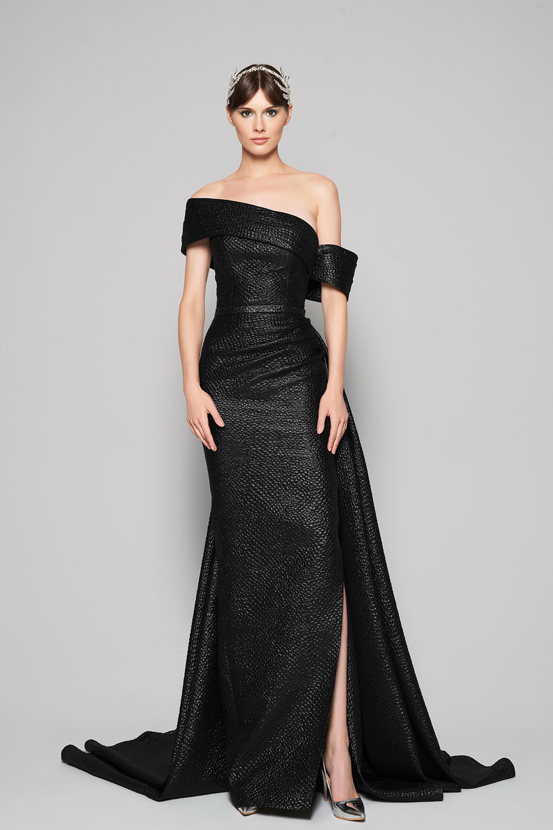 A-Symmetrical Crepe Dress with Corset-Lined Fit