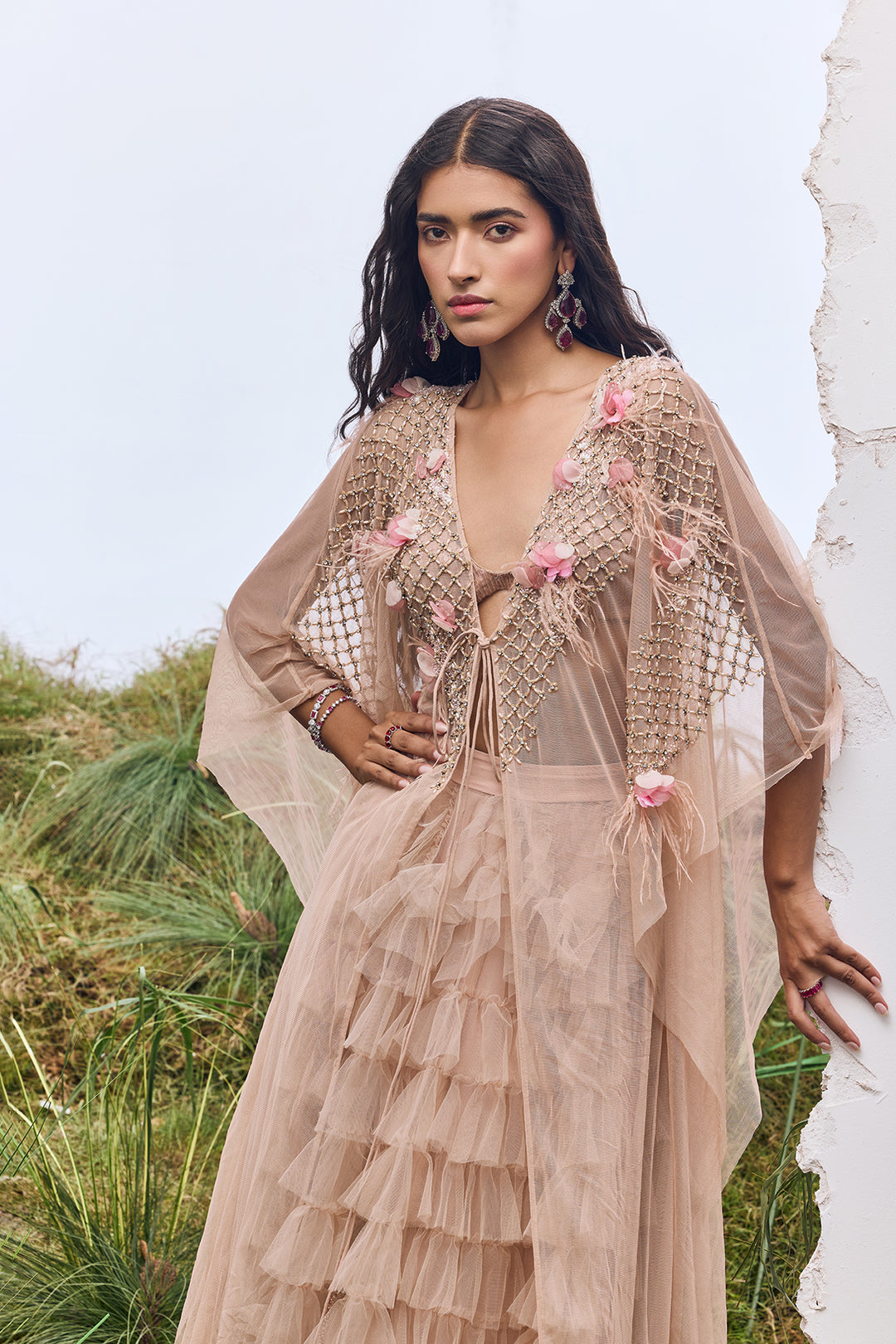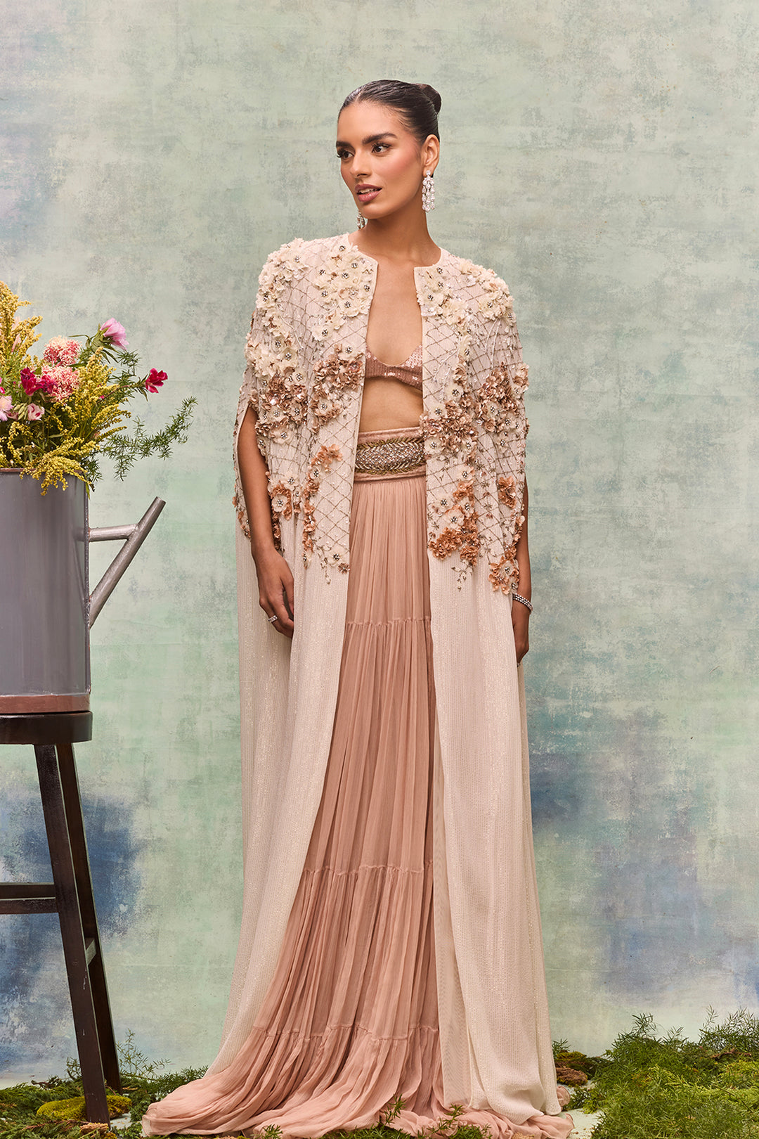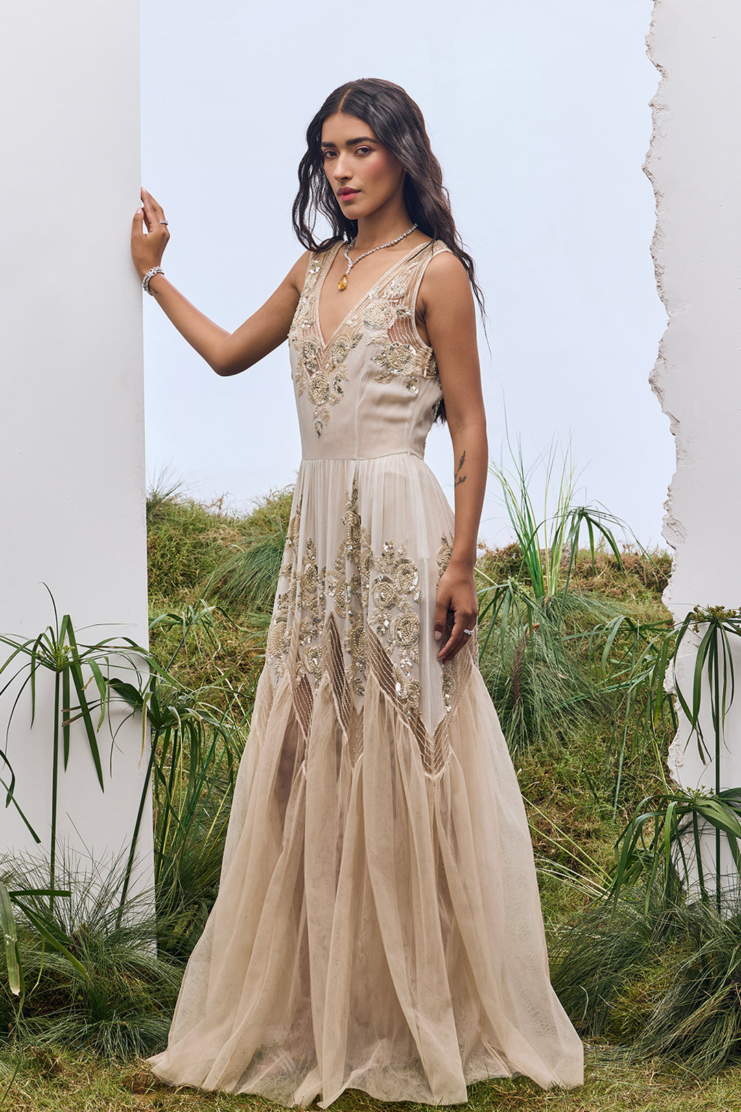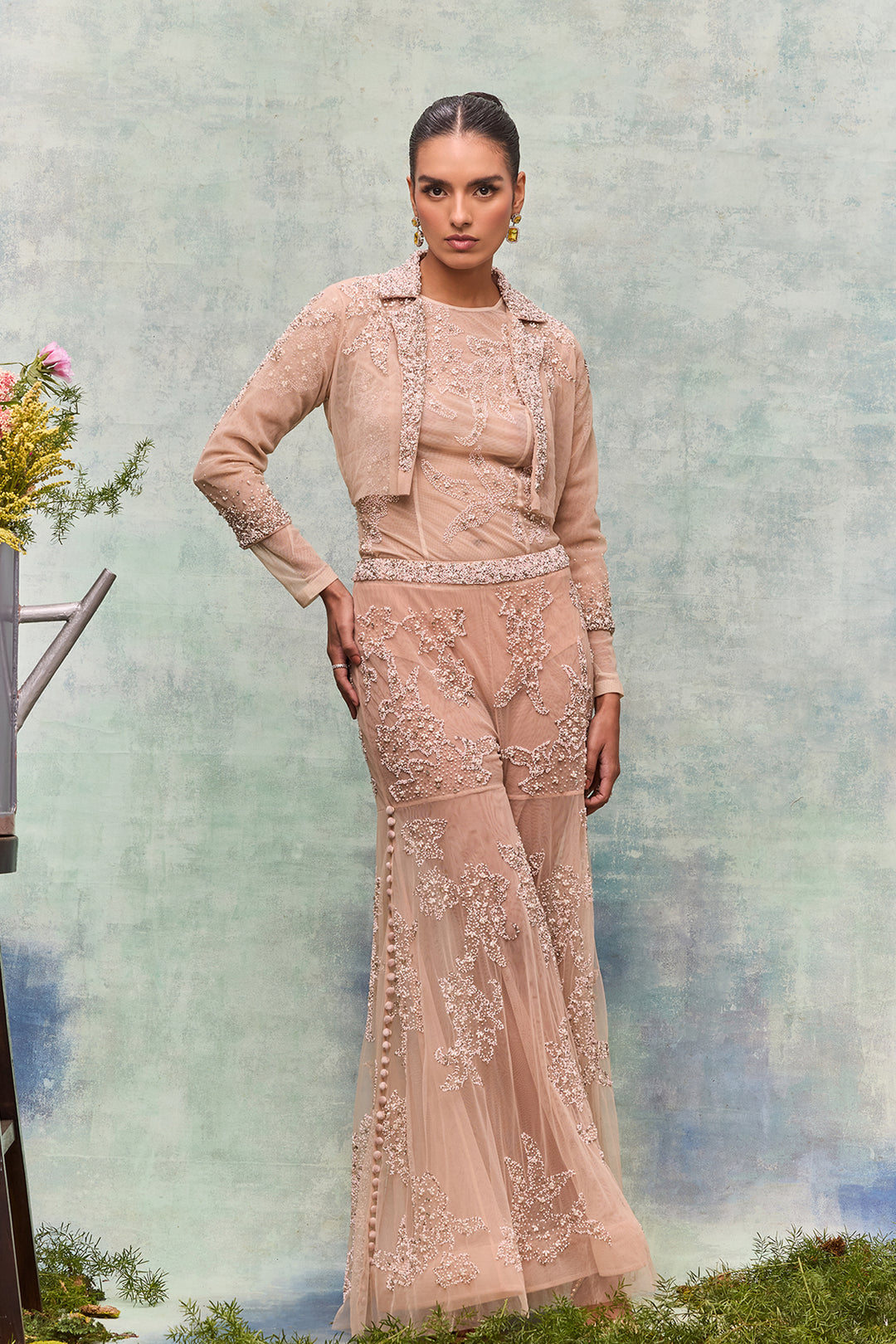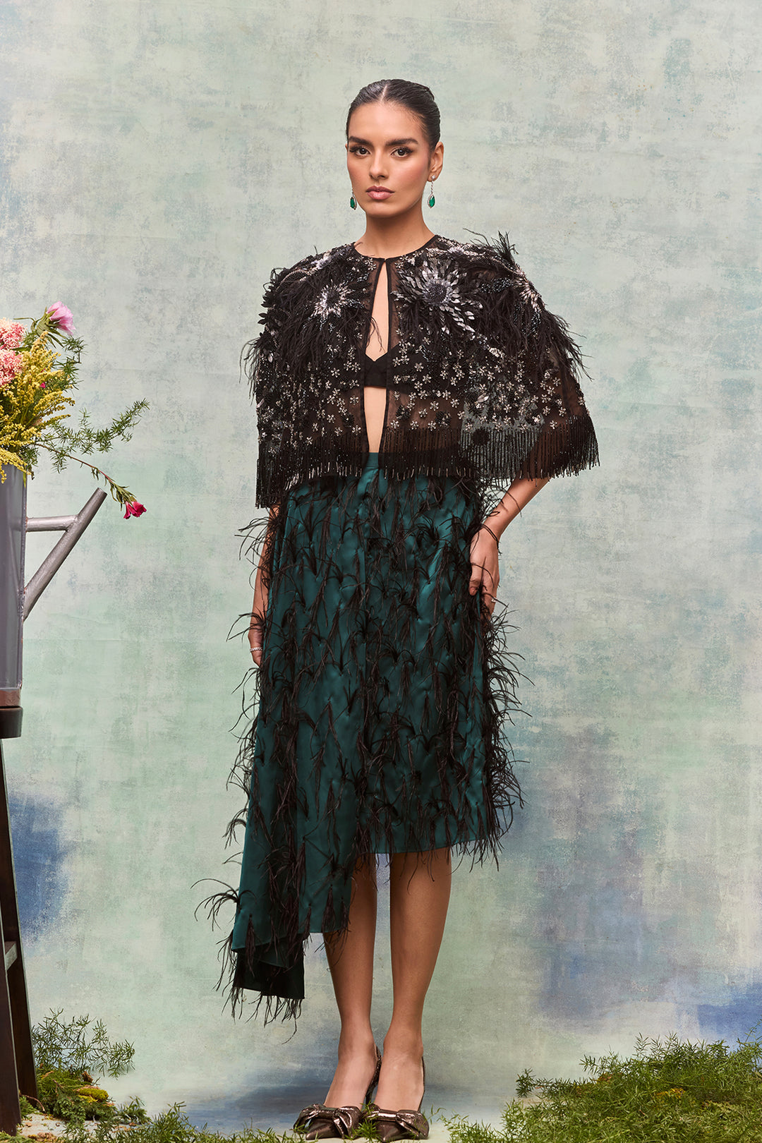 Mesh Two-Piece with Embroidered Maxi Skirt