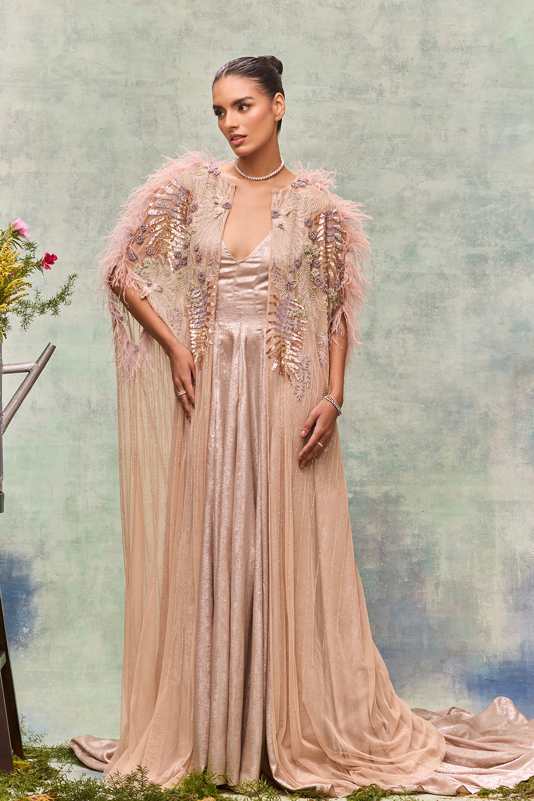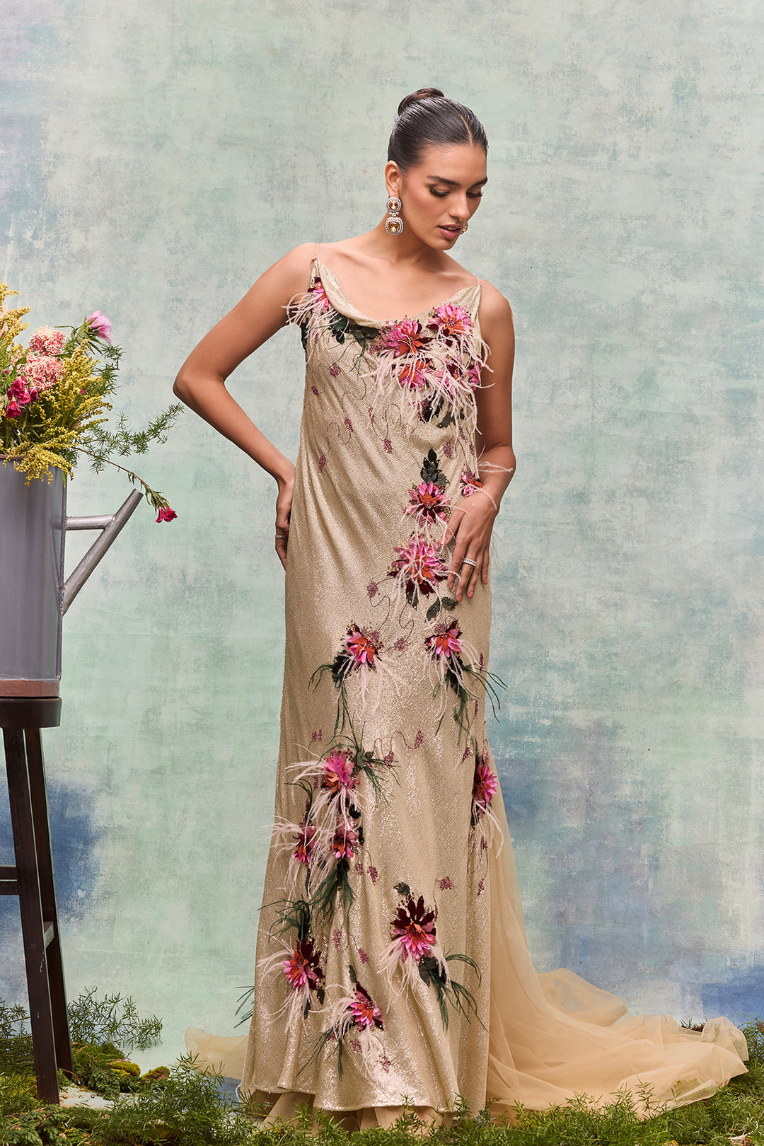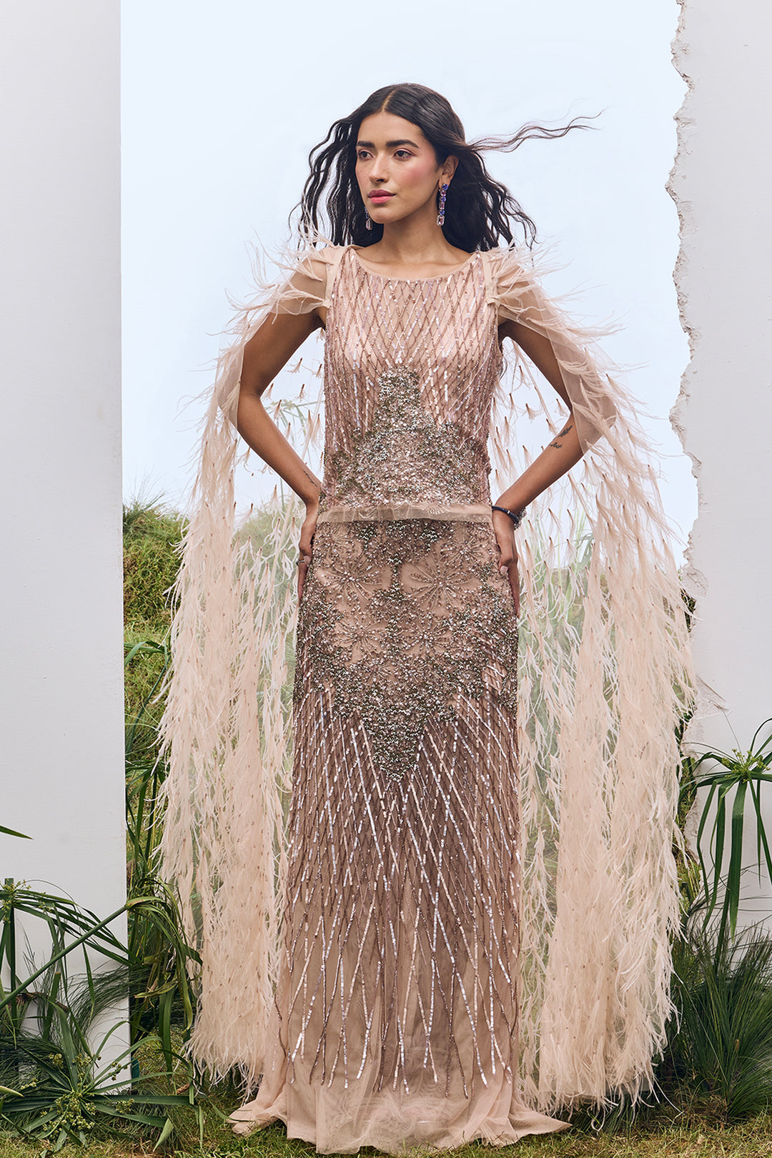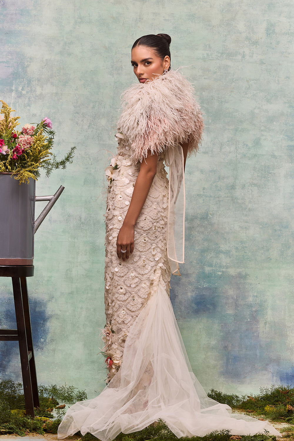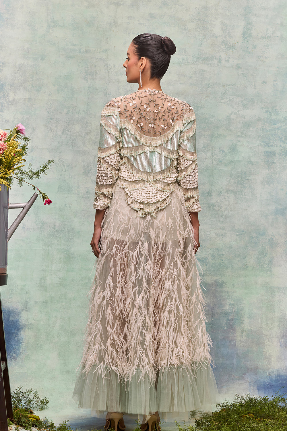 Mesh Two-Piece with Embroidered Maxi Skirt